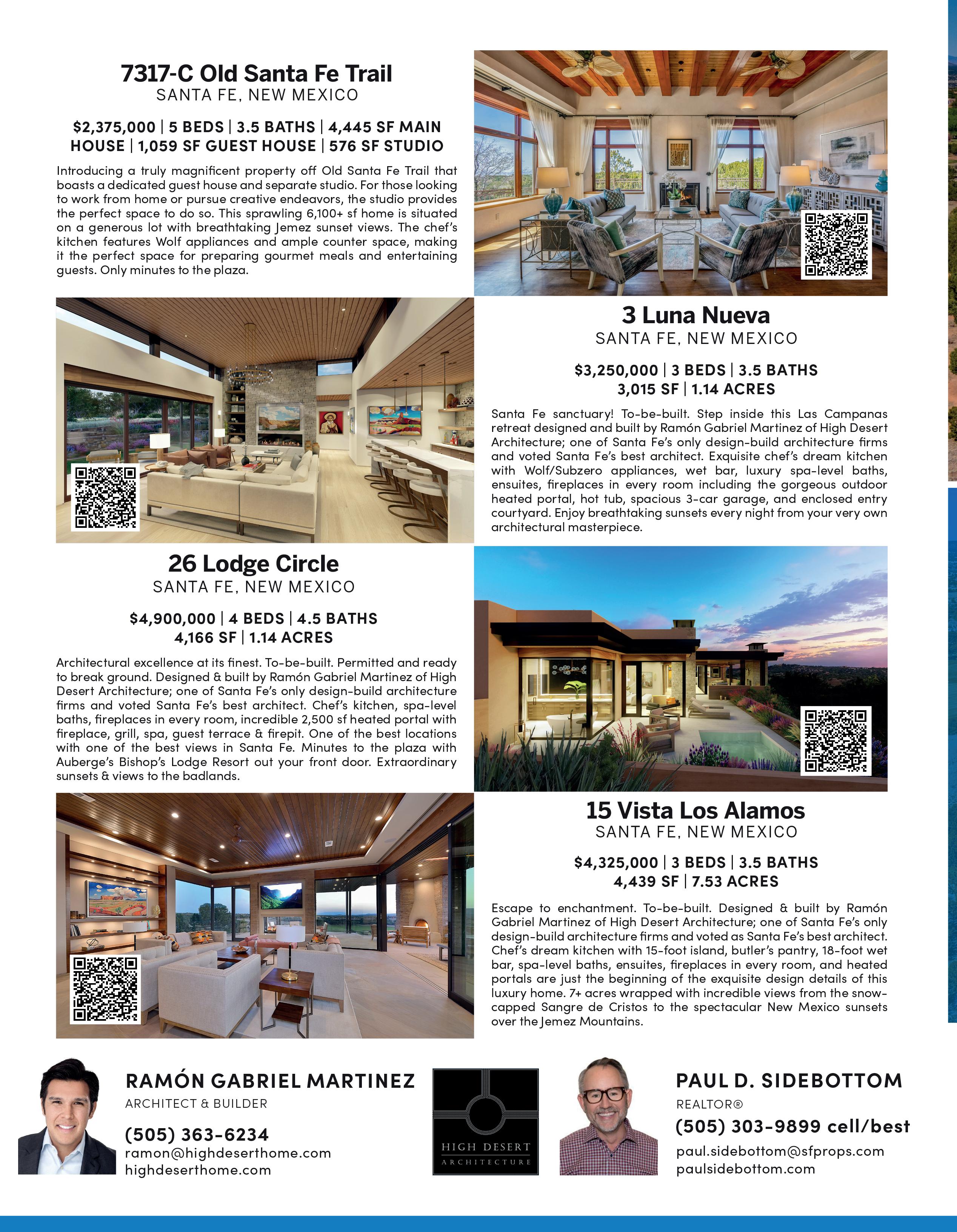 Located in beautiful Santa Fe, New Mexico, Mesa de Oro is one of the last developer estates in Las Campanas to be released. The community consists of 20 homesites spread over 41.22 acres. Lots will be available for sale in May ranging in size from 1.05 to 3.2 acres. This neighborhood affords some of the most breathtaking views of the Sangre De Cristo and Jemez mountains in Las Campanas and Santa Fe.