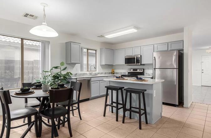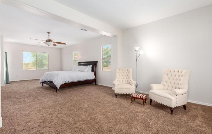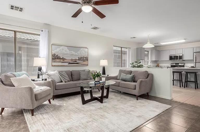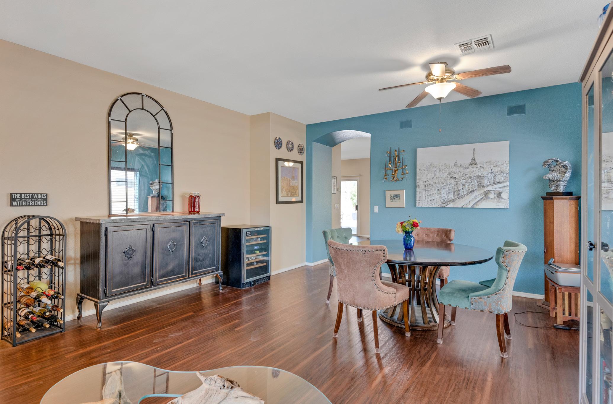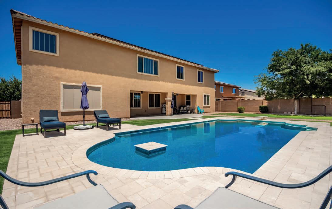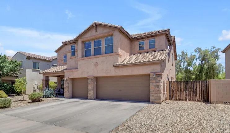 SEE TODAY!! Fabulous 4 Bedroom home in a highly sought-after neighborhood with top-rated “A” schools! This pristine home boasts a versatile floor plan offering abundant space and flexibility. Meticulously maintained, the backyard features an expansive covered patio, extended cobblestone paver patio, and a view fence overlooking the community park. Inside, enjoy a living room, family room, and an upstairs bonus room, all complemented by BOSE speakers in the living room, dining area, and patio. The home showcases beautiful dark wood vinyl plank flooring both downstairs and upstairs, with a kitchen equipped with matching GE appliances in dark stainless, including the refrigerator. Additional features include ceiling fans, sunscreens, a security system (currently unused), and more. The garage offers a convenient sink and side door access.