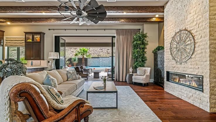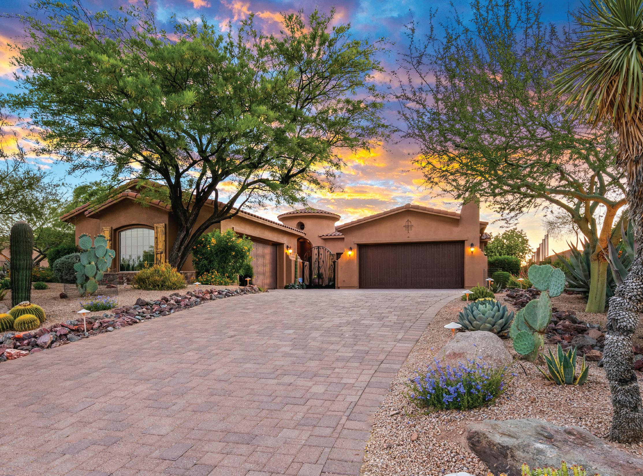 Step into this exquisite single-story home nestled on a coveted corner lot overlooking the lush Golf Course in the exclusive guard-gated Talon Retreat community at Grayhawk.