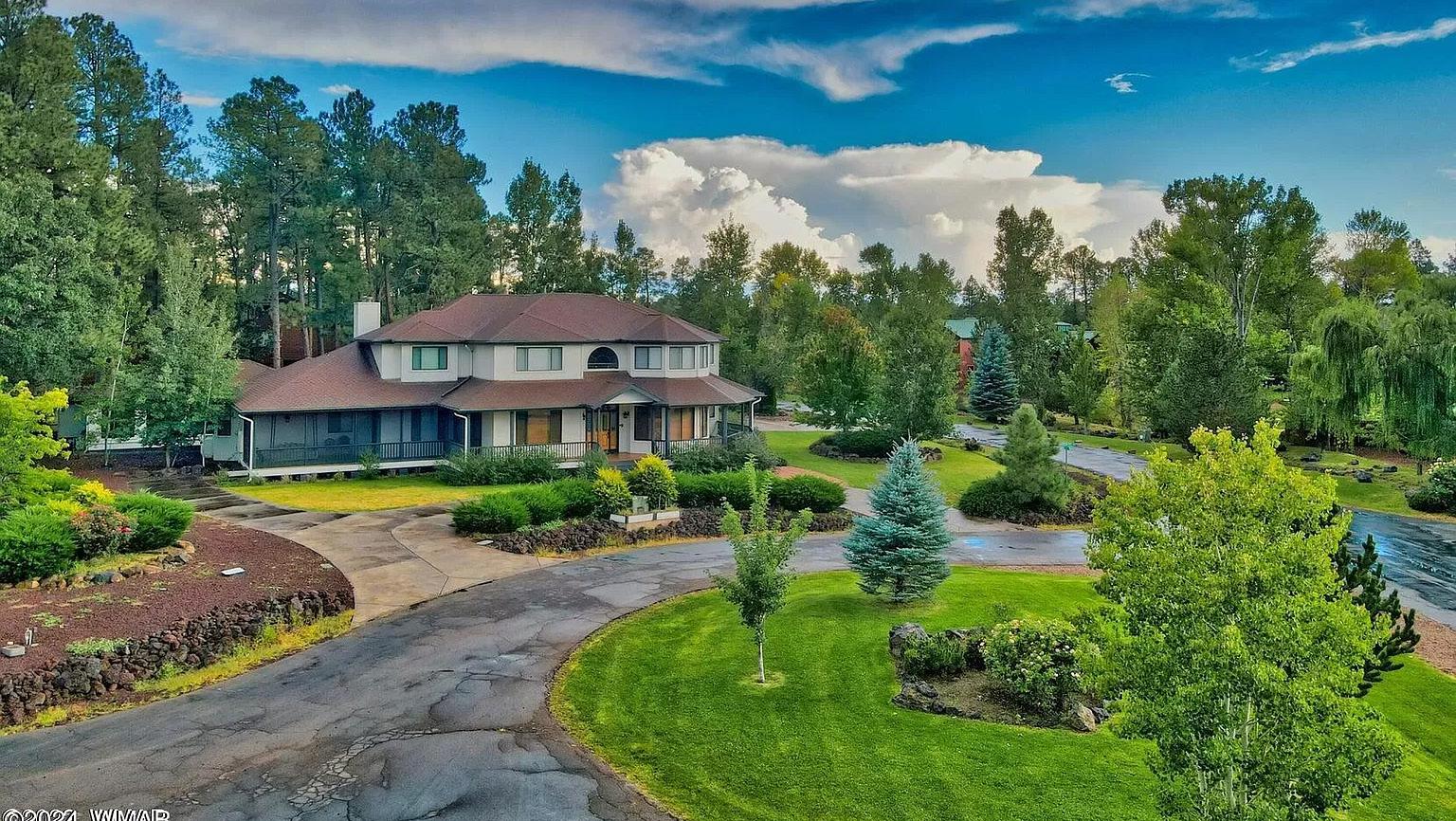 This one-of-a-kind property, inspired by grand design, offers a private indoor Pool, a separate Guest House, a fully remodeled kitchen equipped with top-of-the-line Viking ranges and a convenient butler’s pantry. The expansive layout includes 6 well-appointed bedrooms and 7.5 bathrooms, ensuring ample space for family and guests alike. The residence boasts 5 fireplaces, adding warmth and ambiance to the already inviting atmosphere, in common living spaces as well as private bedroom! The attached guest house offers privacy and comfort, while the master suite provides a sanctuary of luxury with its opulent design. Artistic hardwood staircases lead to a great room with impressive second-level ceilings and a catwalk that overlooks the sophisticated formal dining room and parlor. The property also includes a vast bonus room, perfect for entertainment or leisure activities. The wraparound covered porch and open sun deck invite residents to enjoy the picturesque sunsets over the lake, adding to the home’s charm. Practical features such as the three-car garage with a new Trex-Deck mud porch provide convenience and functionality. Imagine living in the White Mountains of Arizona where you have 4 beautiful seasons and where you can breathe in the fresh mountain air and enjoy the 40 lakes and over 600 miles of rivers and streams. Come and explore and enhance your living! Pinetop-Lakeside was also voted ‘Best Cabin Region in the U.S”... Embrace the MAGIC!