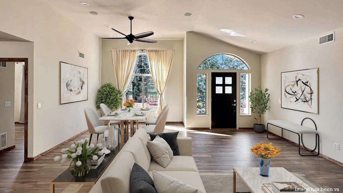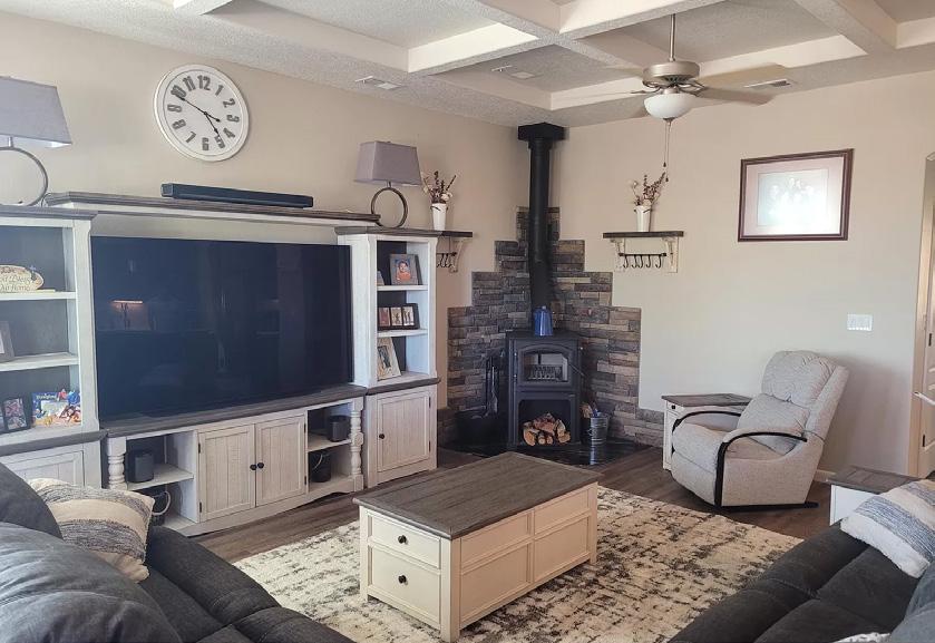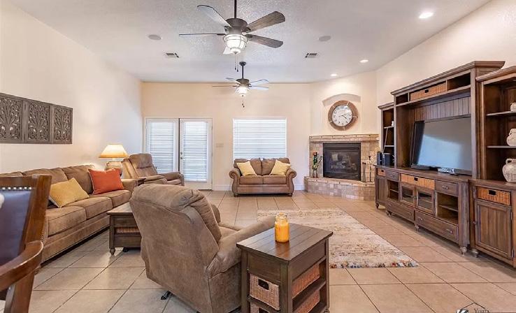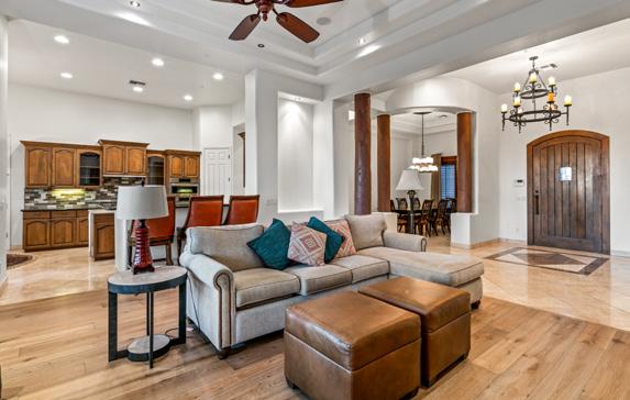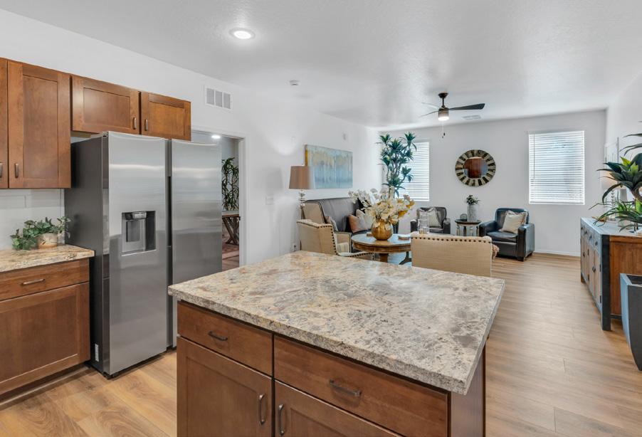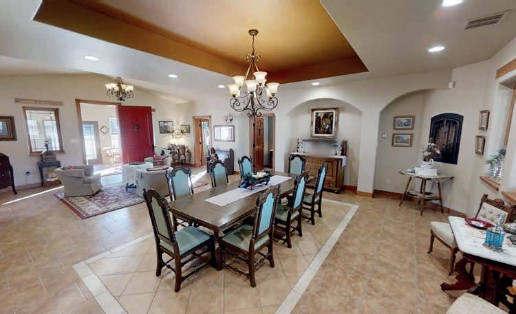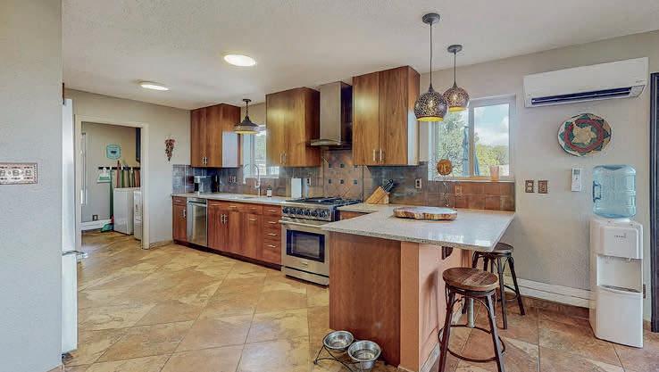Nestled on Carolina Way, this tranquil family home sprawls across 1.7 acres and boasts an array of modern upgrades. A charming Porte-Cochere welcomes you home and adds to the property’s allure and convenience. Entering through the custom designed front door, you are greeted by an inviting atmosphere that seamlessly combines spaciousness with coziness. The home features all the contemporary upgrades that define modern living, including a gourmet kitchen with sleek appliances, luxurious bathrooms with spa-like amenities and energy-efficient systems throughout. The highlight of the outdoor area is an exquisite kitchen, perfect for entertaining, overlooking a serene Koi pond. Custom cherry cabinetry and finish woodworking throughout. Stone coated steel roof with lifetime warranty on the 7,200 sq ft under roof. Major construction projects in 2010, 2015 and 2017 updating and modernizing with the very latest amenities. Electronic security gate promoting private access to the grounds. Whether relaxing on the patio, working in the greenhouse, exploring the grounds, or just enjoying quality time indoors, this property truly embodies the essence of peaceful family living. Shown by appointment. 1909 CAROLINA WAY, ROSWELL, NM 88201 • 3 BEDS | 4