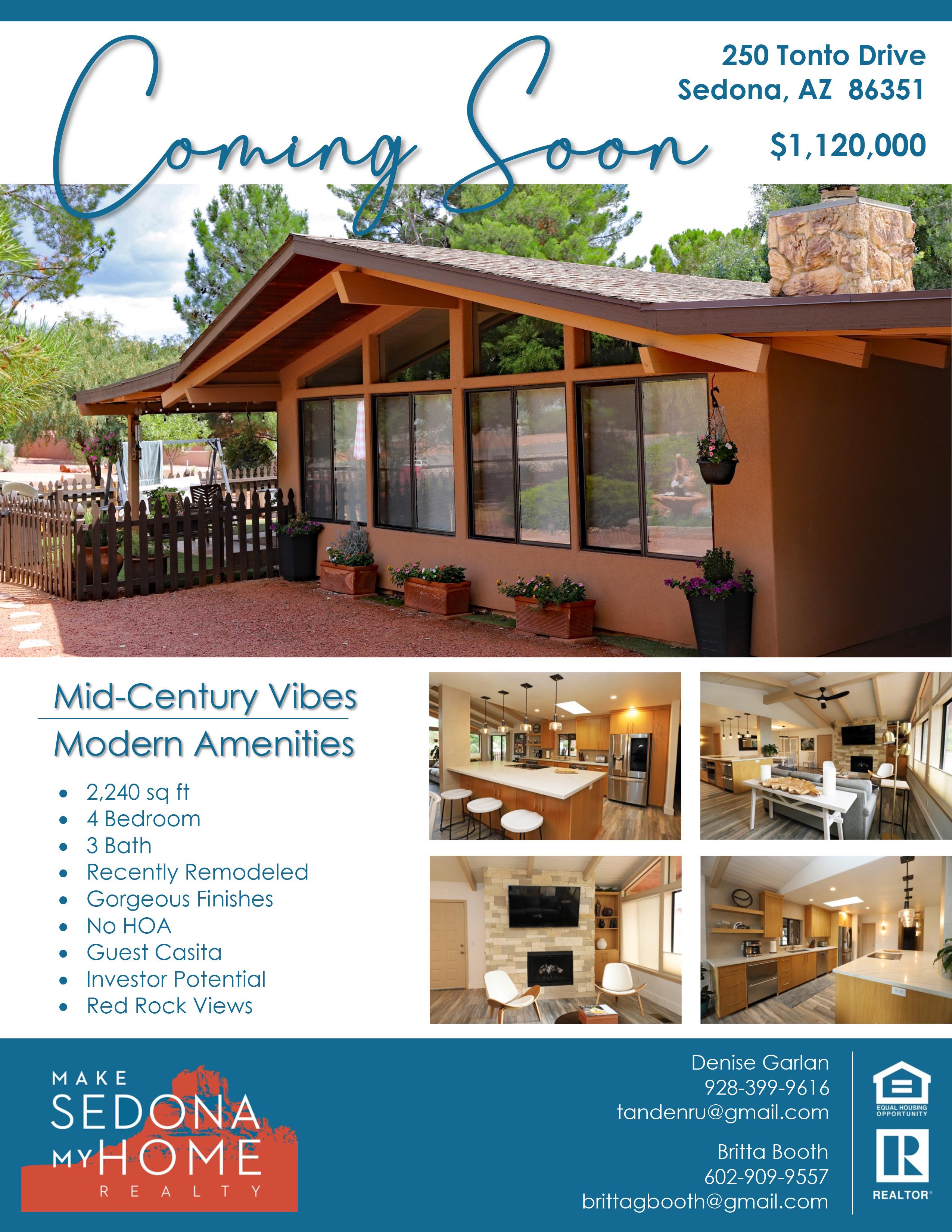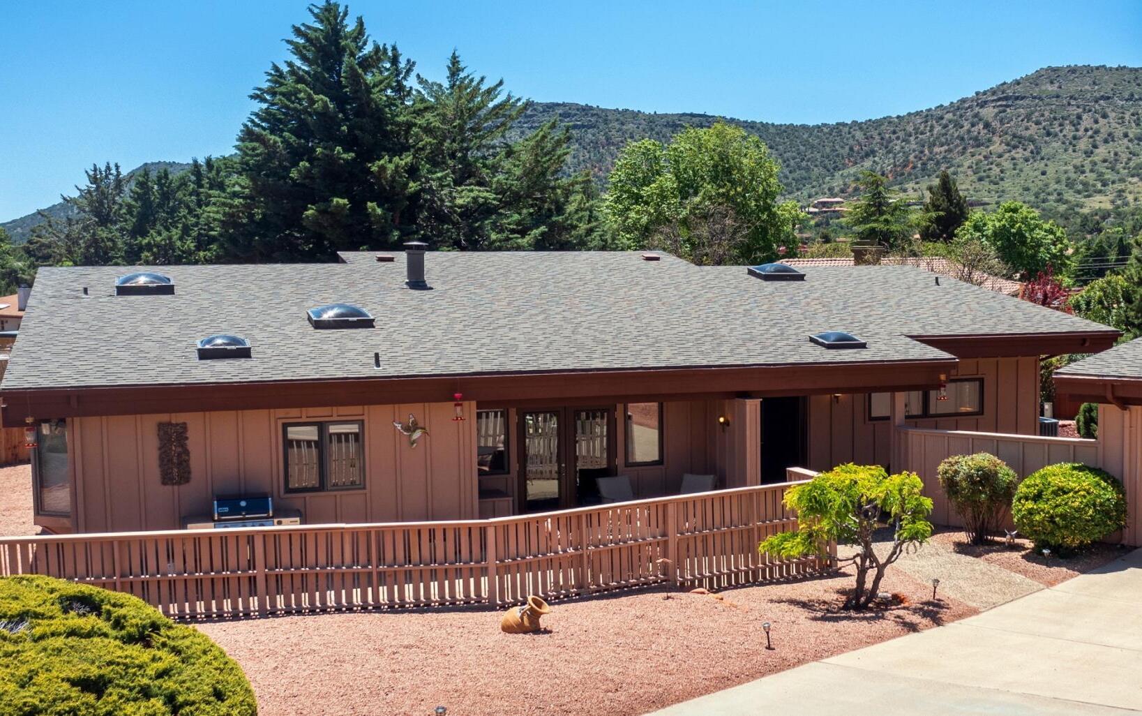 West Sedona home on oversized estate lot in premier gated subdivision built on two levels - complete with in-law apartment on lower level. Main level features a split floorplan for privacy and massive living room and open design kitchen with soaring ceilings and red rock views from the main living room, bonus room and 3 patios/decks. Primary bedroom suite features a newly remodeled bath with two sided shower, freestanding tub and laundry facilities in the closet. Lower level is completely separate and has a full living room, bedroom, kitchen, laundry and patio to give your long term guests privacy and separation. Neighborhood sits on the west edge of West Sedona with quick access to grocery, restaurants ,and even quicker access to West Gateway trail system for endless hiking and biking.
