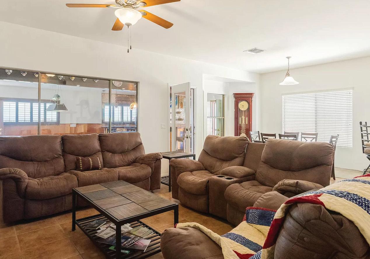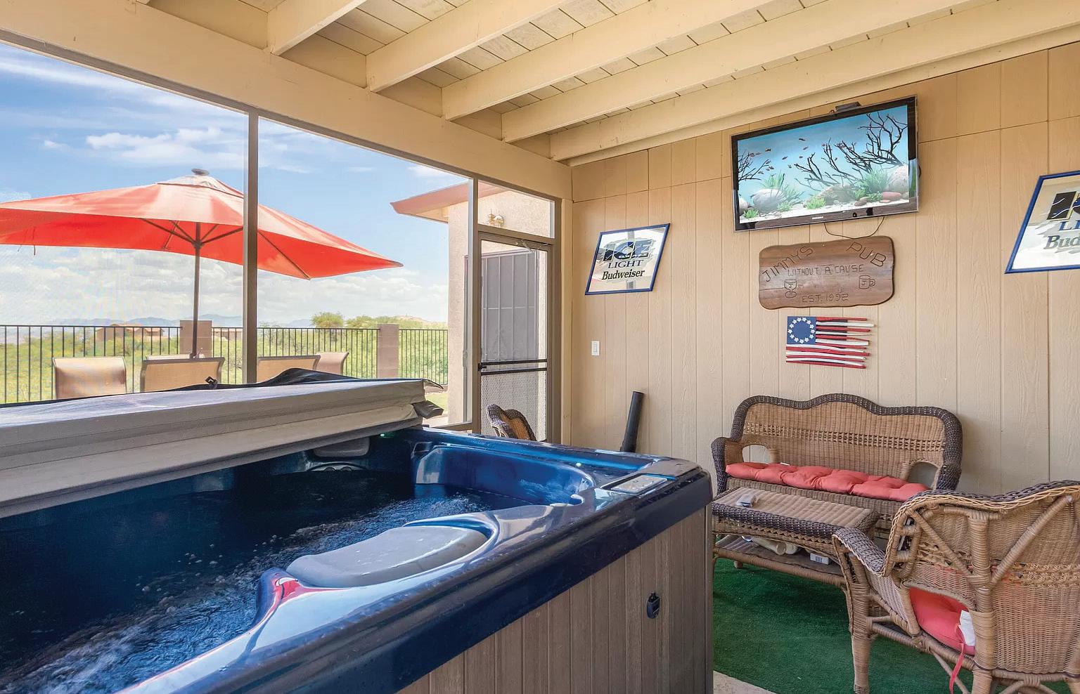 This immaculate 3-bedroom, 2-bathroom home split floorplan, perfectly situated at the back of a tranquil cul-de-sac in the highly rated Benson School District makes it an attractive choice for families seeking quality education for their children. The screened-in porch, complete with a spa, allows for year-round outdoor enjoyment. Additionally, the property includes a bonus storage room and an oversized garage with built-in cabinets, ensuring ample storage and organization options. Don’t miss this opportunity to own a home that combines comfort, and spectacular views. If you’re looking for a peaceful retreat or a place to entertain, look no further.