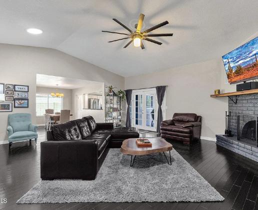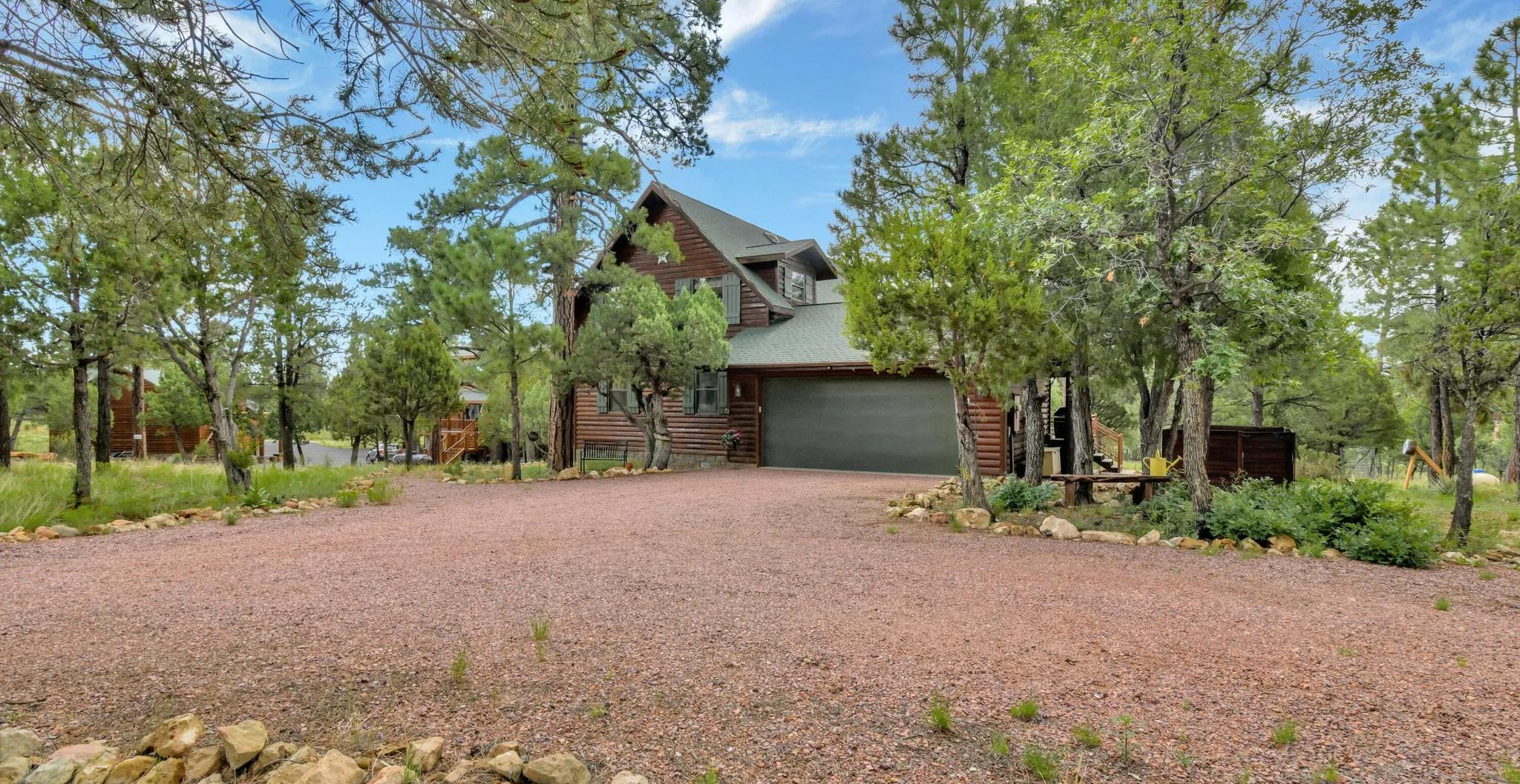 Nestled amidst the picturesque landscapes of Happy Jack, Arizona, stands a magnificent custom home that embodies the epitome of luxury living. With four bedrooms and two baths, this residence offers a spacious and inviting retreat. The cathedral ceiling adds a sense of grandeur to the home, while a wall of cased windows floods the interior with natural light, offering panoramic views of the surrounding landscape. Adjacent to the great room is the beautiful, spacious kitchen, a culinary haven with ample counter space, and custom cabinetry, it’s a chefs dream. In every corner of this home, from its elegant design to its breathtaking views, there lies a sense of peace and tranquility that is simply unmatched. It’s a must see!
