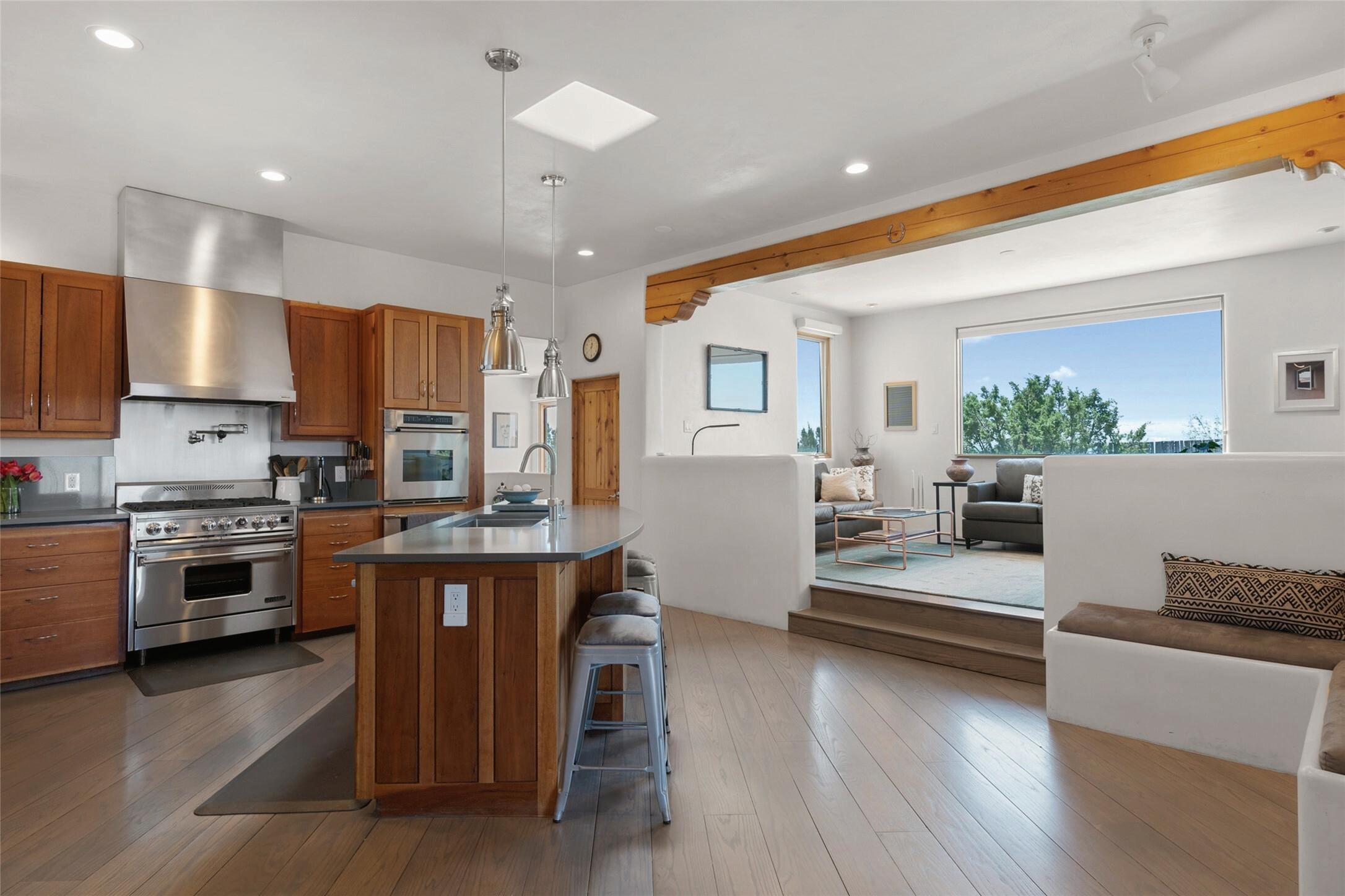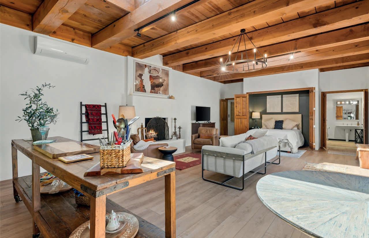 Experience the best of Santa Fe from this elegant and immaculate studio condominium, located in the Guadalupe Historic District, just steps from the Santa Fe River Trail and an easy walk or ride to the Railyard, Plaza, and all downtown attractions. This light-filled studio is the perfect blend of upscale sophistication and classic Santa Fe charm, with just the right touch of rustic detail. The grand exterior gate to the compound provides security and conceals the beautifully appointed inner courtyard, perfect for sunbathing or enjoying meals al fresco. Built in the 1930s, you will feel a sense of Santa Fe’s rich history while enjoying a meticulously updated and maintained downtown sanctuary. Furnishings and household items are available for purchase separately, making this gem truly move-in ready.