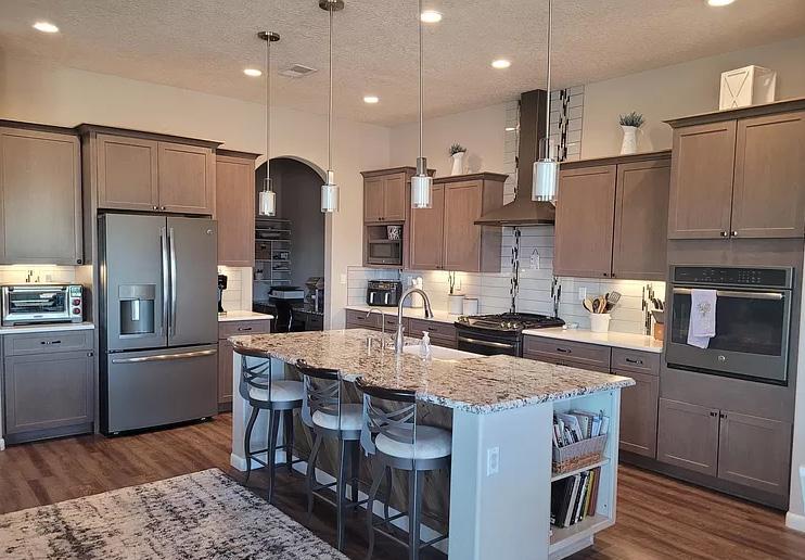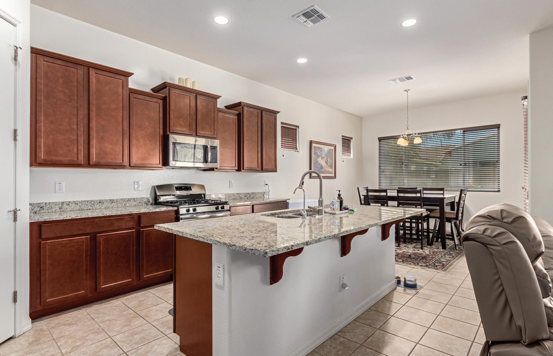 This stunning two-story residence built in 2021 is ready to meet its next owner. Boasting four spacious bedrooms and three and a half sleek baths, this home is designed for modern living. As you enter, you’re greeted by a welcoming living room that immediately flows into a sleek kitchen. Enjoy the elegance of tiled flooring, recessed lighting, a granite island & bar top, glossy stone backsplash, and top-of-the-line stainless steel appliances. Upstairs, an additional den space provides the perfect spot for relaxation or entertainment, while the generous bedrooms offer ample comfort. The master suite is a true retreat, featuring an oversized granite countertop sink, a bubbly soaking tub, and a tiled walk-in shower with a stylish stone ribbon. The oversized garage offers plenty of storage space, and the side open and covered patio is ideal for outdoor gatherings. Located in a growing & developing area, this home combines modern amenities with the promise of a vibrant community!