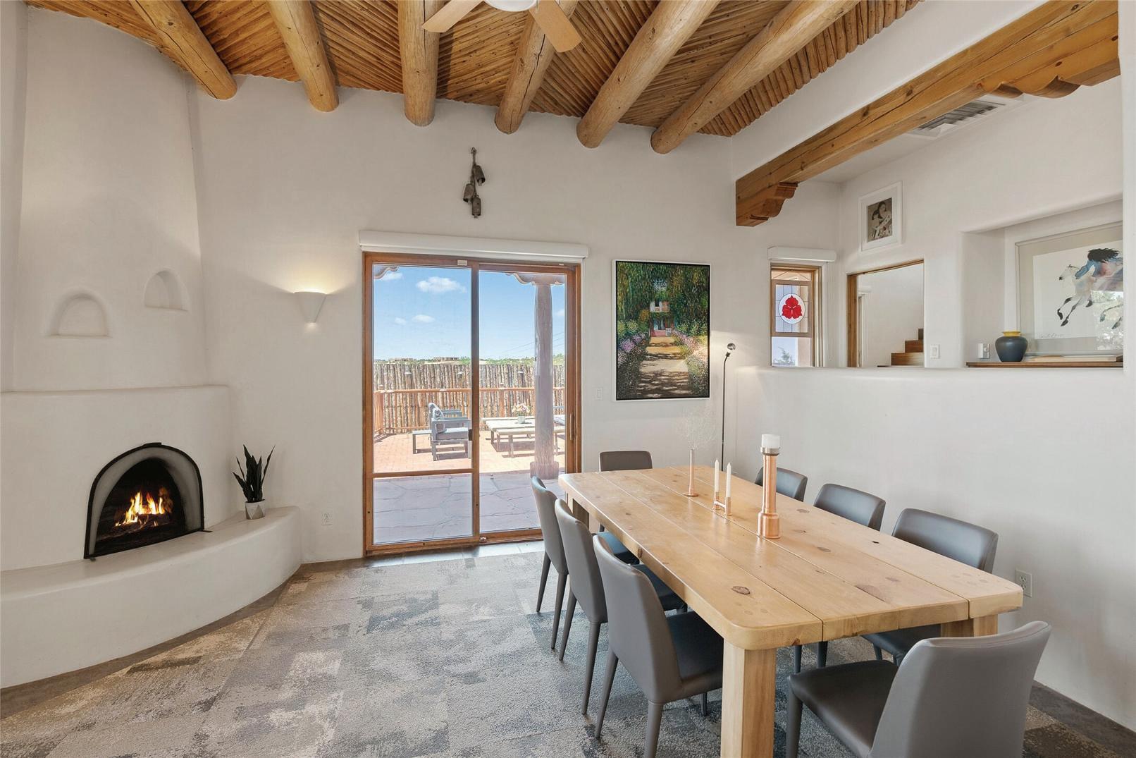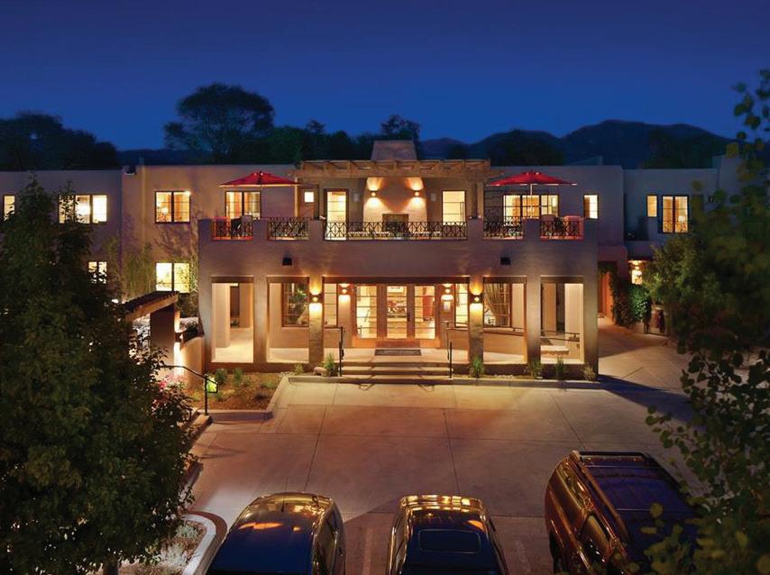 Come see what the lap of luxury looks like, right in the heart of downtown Santa Fe! El Corazon is a thoughtfully designed and beautifully finished premier resort-like community, and is only a 2-minute walk to the famous Santa Fe Plaza, boutique shops, restaurants, and galleries. This second level unit is lovely and very comfortable, featuring 2 bedrooms and 2 full bathrooms, as well as an open concept living room, dining room and kitchen. The private outdoor space is accessed through French doors off the living room, perfect for relaxing with your favorite book, morning coffee, or an afternoon nap! The kitchen features light wood cabinets, granite countertops, and stainless steel appliances. The primary suite includes an ensuite bathroom with a double sink vanity, jetted tub, and walk-in shower. The walk-in closet is huge! There are smooth plaster walls throughout the condo, a gas kiva fireplace in the living room, vigas and wood ceilings, carved wooden posts with corbels, skylights, and beautiful slate tile flooring. This all comes together to create an extremely comfortable environment, tastefully designed to reflect the elements that distinguish southwestern architecture and style. The in-floor radiant heat will keep you toasty warm in the cooler months, and the central AC cool in the warmer months. The laundry is just outside the primary bedroom. One designated parking space in the heated underground parking garage, and additional visitor parking spaces in the garage. New roof installed in 2023. With BCD zoning, short-term rentals are permitted. A city permit may be required. The complex has on-site management with a clubhouse, lounge, fitness area, and outdoor gathering spaces. Some furnishings available for purchase.