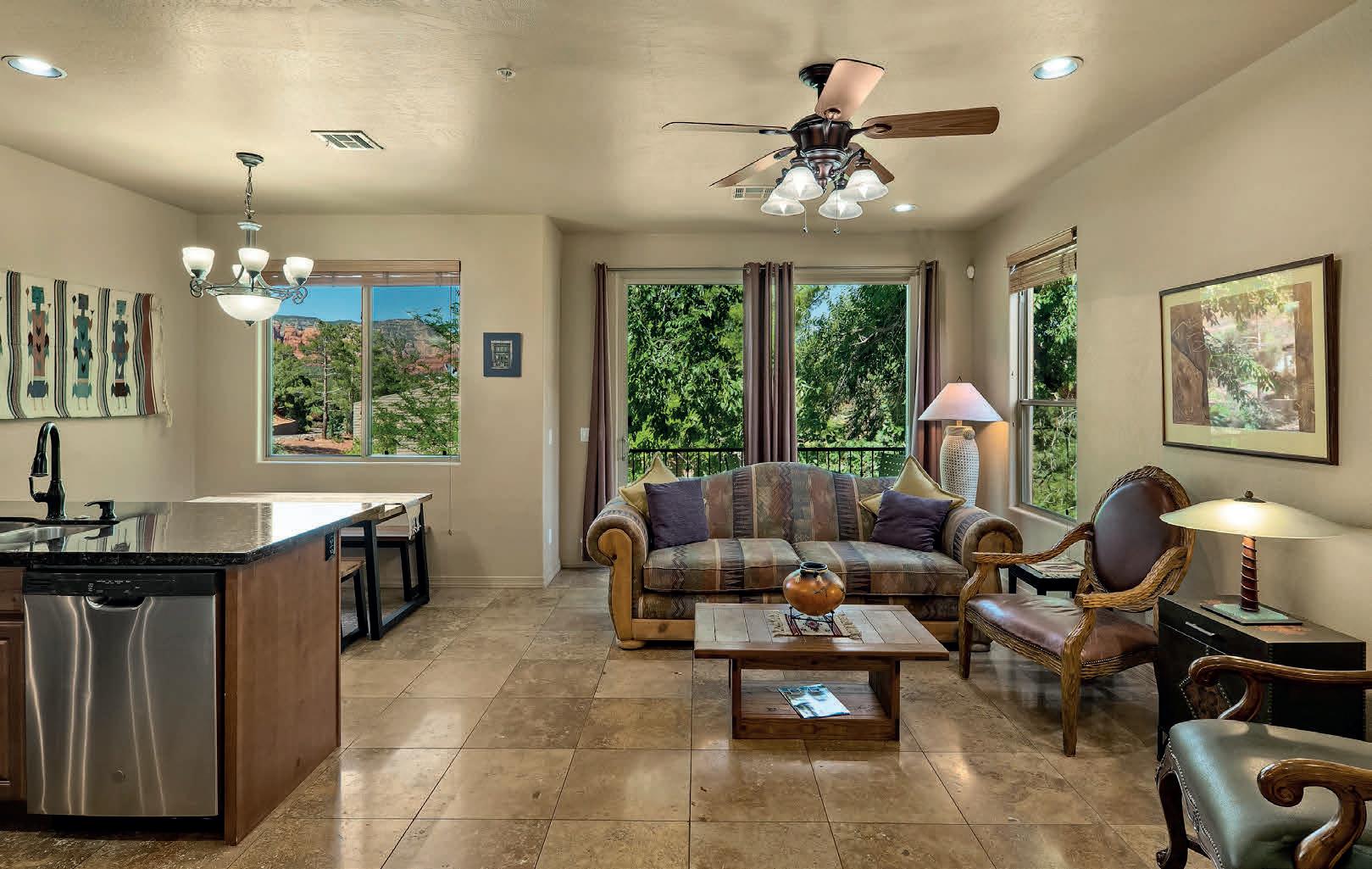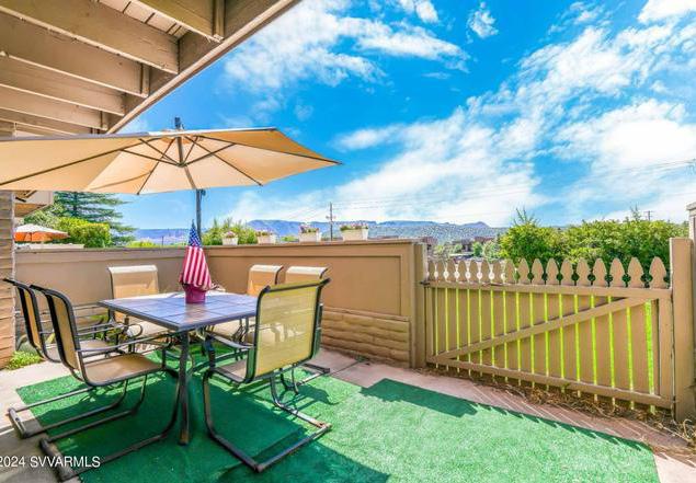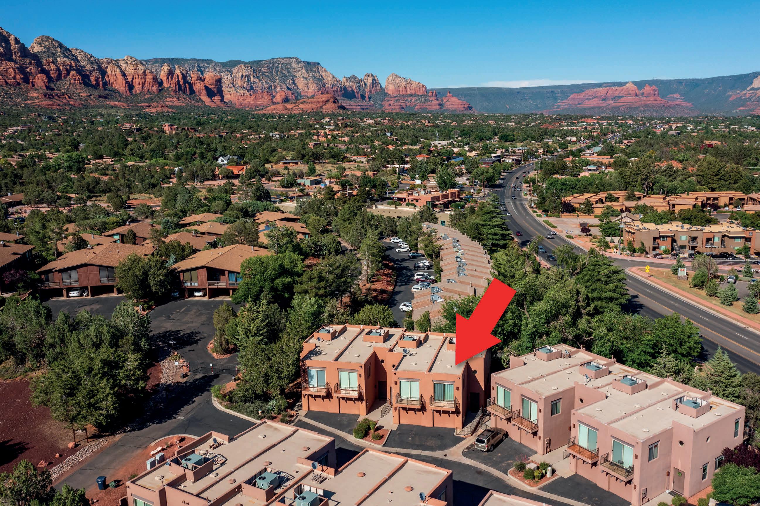 This 1,252 sq ft, rare 2 primary suites, 3 baths unit is a high quality, end unit townhome w/ balconies and views, one car garage. Great location and access to the heart of Sedona. Suite is on each level allowing for additional privacy. Stackable washer and dryer for convenience and access. Well maintained water filtration system, newer Samsung 4 door refrigerator and microwave, to name a few of the improvements of this unit. Turn key, 30 day minimum rental, furnishings may be included. Don’t miss this getaway, income property. Rental history available.
