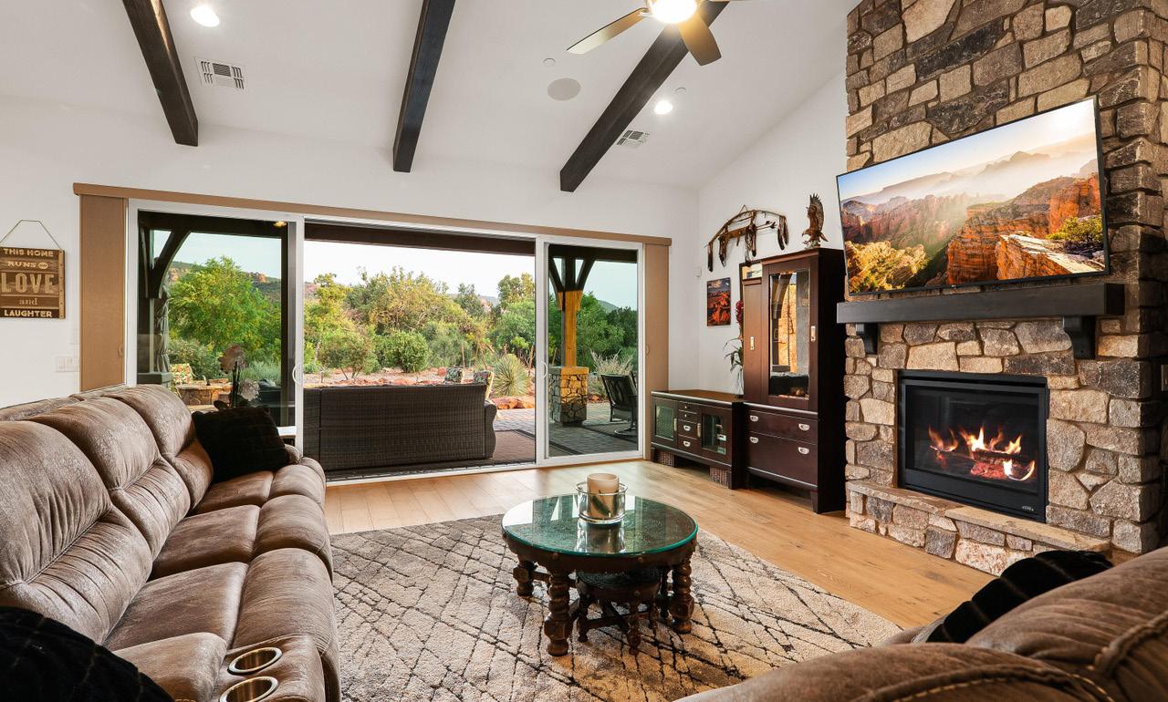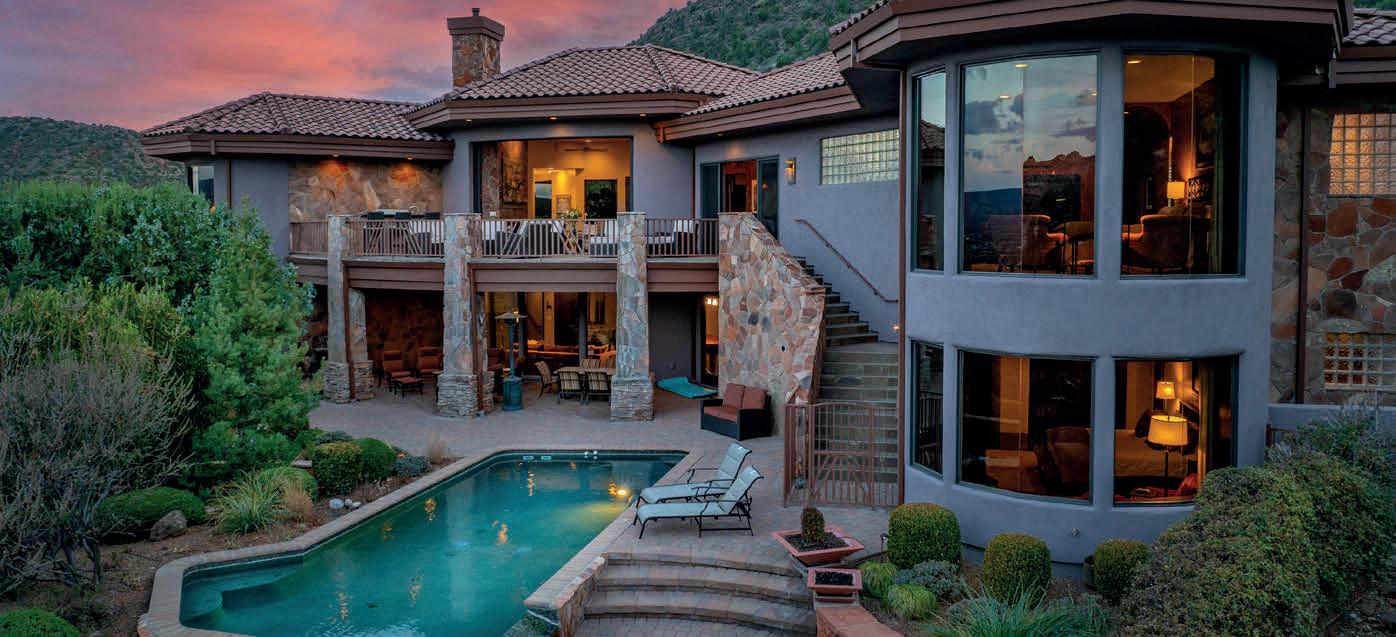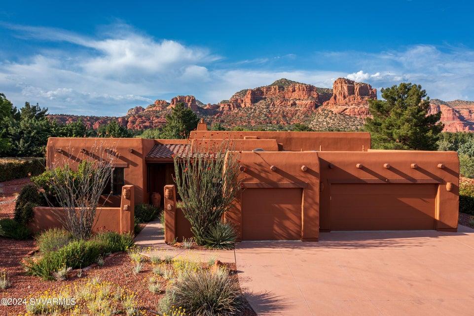 Unparallelled luxury spa-like estate backing to National Forest with expansive Red Rock views of the surrounding buttes and mesas. This Sedona Golf Resort private residence is perched for unblockable red rock views from every room and endless outdoor entertainmentPebble-Tek pool on one side and miles of slickrock trails out back. Massive bedroom suite features butted glass windows to maximize views. Impeccable bespoke kitchen with stainless Thermidor/Wolf appliances and Verde Lux granite plus living room with disappearing radius glass doors make this home ideal for entertaining guests. Lower level elevator accessible suites with kitchenette provide an ideal guest experience that opens onto the dreamlike Sedona backyard pool for lounging in the shadows of the red rocks.