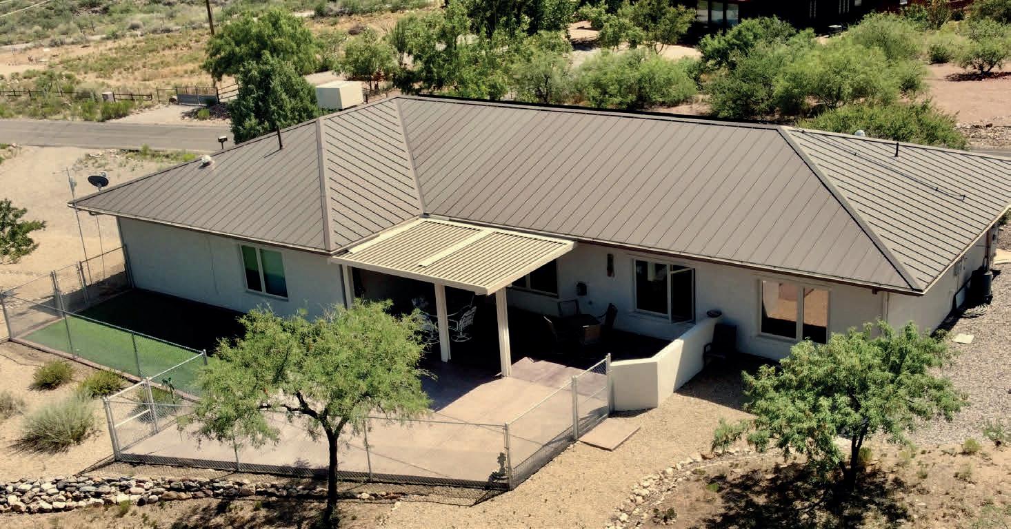 Here is a rare opportunity to own a Southwest contemporary style home in the prime gated community of Three Canyons Ranch. Custom built in 2005 by Walston Custom Homes, it is situated on a 14.73 acre corner lot just off a paved Three Canyons Road. With 2,325 sq ft of thoughtfully designed living space in the main house, owned solar panel system, and an attached 2 car garage, this property offers more than most. A recently added 835 sq ft detached, pool house with a ¾ bath, roll-up glass door, and an attached 2.5 car extended garage affords an area for hobbies, recreation, or guest quarters. This multi-purpose space has been carefully designed to be cohesive in style with the main house and back courtyard while still affording the option for privacy. The scenic backyard oasis features a stunning pool, exquisite landscaping, and awe-inspiring views. Schedule Your Private Tour Today.
