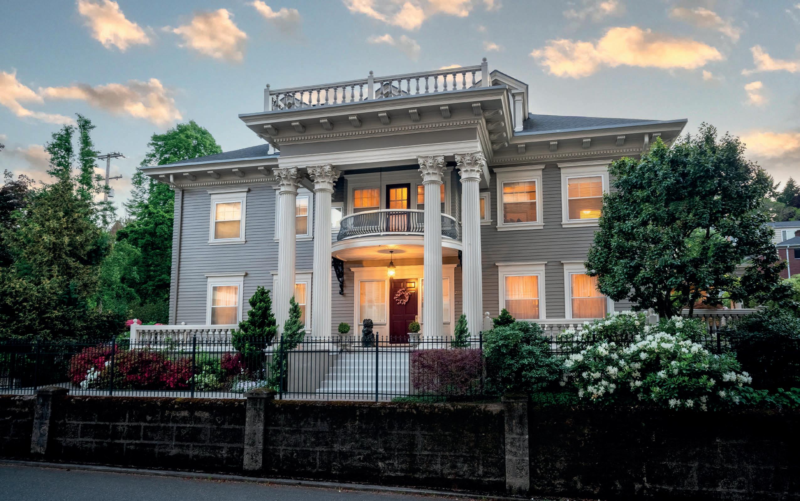 This 1907 build home was on the historic registry and has been stunningly preserved and updated while staying true to it’s character. The home strikes you as soon as you see it. It is beautiful and stately with carved columns, a spacious front porch, iron style fence, close to everything. Stunning built ins, crown molding carved by hand, gorgeous beams and high ceilings; every room of this home has fascinating history and fun features. Enjoy books by the fireplace in the library, evening BBQs or morning coffee on your spacious patio off the kitchen, or on your covered porch or one of the balconies. The homeowners lovingly brought in furnishings and fixtures from all over the world and have cared lovingly for this home for almost 40 years. Newer modulating furnaces, updating plumbing, newly painted exterior (all old paint removed), this home is in almost perfect condition. Remodeled kitchen with all modern conveniences but true to the character of yesteryear with a built in eating nook, gas Viking stove/range, large island, new white cabinetry and so much more. This lovely home also has an oversized garage for convenient parking and storage. Walk to Zupans and all the parks, shops, and minutes from freeways.