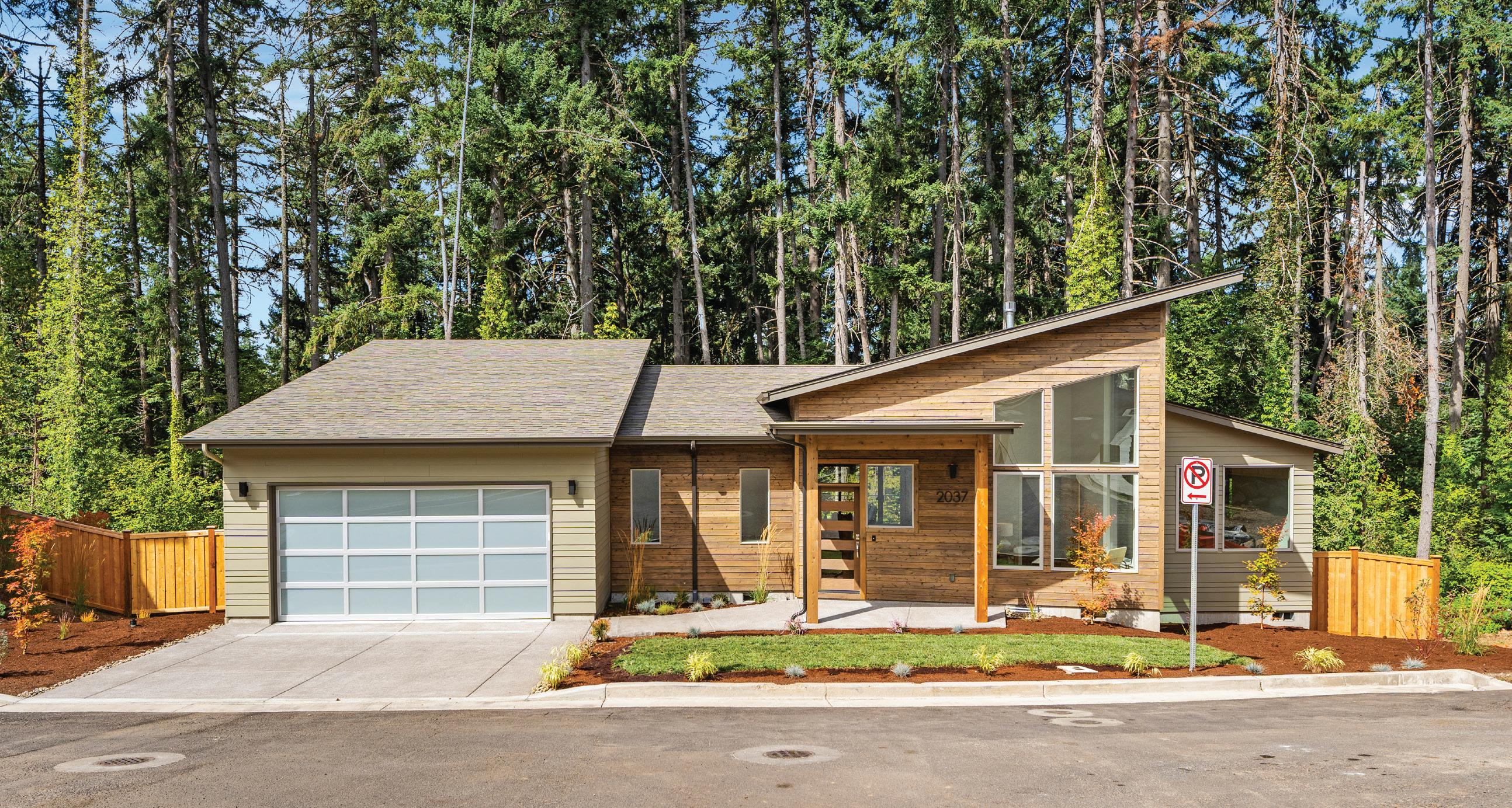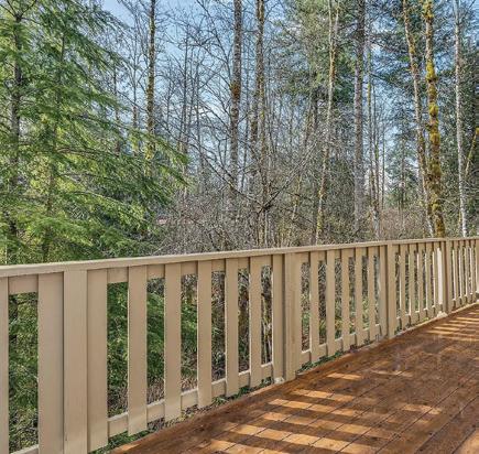 Custom designed single-level modern home with 3 beds, 2.5 baths plus a den perfect for an office or gym. Open floor plan with vaulted great room and light-filled dining area. Double slider onto large private deck, perfect for entertaining or relaxing. Real hardwood floors in main living areas. Stunning kitchen with quartz counters, large island and stainless steel appliances. Primary bedroom suite with soaking tub, walk-in closet & large walk-in shower. Nestled next to tree-lined greenspace bordering Laurelwood golf course. Stunning forest views through expansive windows creates a harmonic blend of home and nature. You must see this beautiful new construction home built by Villa Home Design LLC.