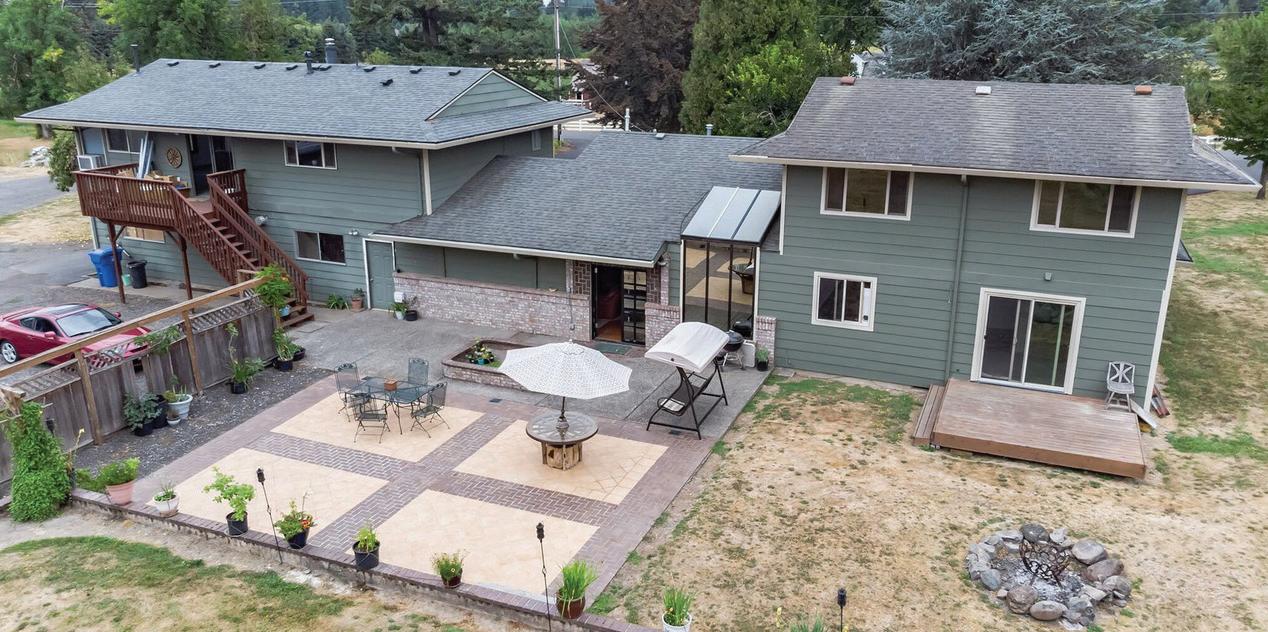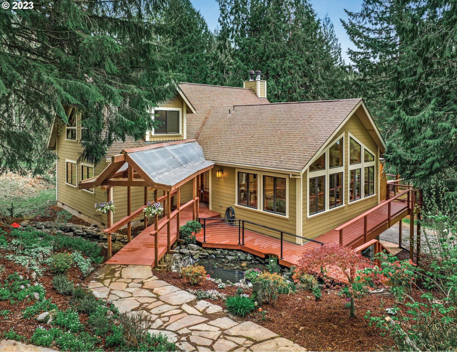 3 Beds | 3.5 Baths | 7,687 Sq Ft | $4,000,000. Enjoy being surrounded by comfortable elegance in this classic mission style home-secluded from the world by the trees and the sky. Just 15 minutes to Portland. Bespoke building materials used throughout were handmade and sourced directly from craftsmen. Wrought iron, Cantera stone, hand painted tiles. .. grand two story living and dining hall feature hand hewn beams and travertine fireplace, flooring and accent wall. This space is perfect for both intimate gatherings and your largest group of friends. The owner’s wing is quietly located on the main level and consists of a spacious library/office with a separate entrance, laundry room and primary bedroom suite with steam shower, two closets and heated tile floors. Upstairs you will find separate bedroom suites with balconies along with a media/ bonus room and wet bar. One acre of beautifully landscaped, low maintenance plantings surround the spacious patio and swimming pool. Infrastructure amenities include gated entry, Savant smart home system, geothermal heat and an on demand generator, RV amenities.
