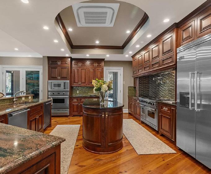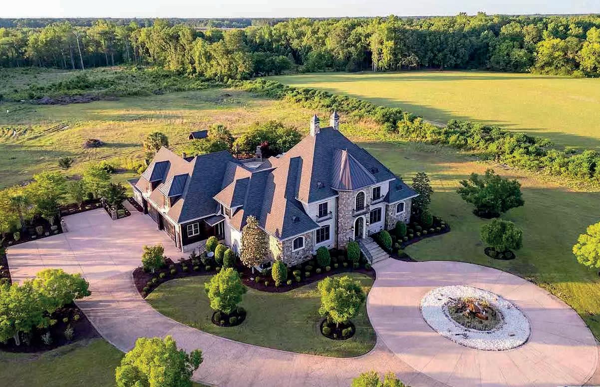 Situated on twenty-two gated acres with a picturesque stream snaking through the back of the pastoral property, this sprawling estate is a one-ofa-kind rural escape, complete with a gorgeous quarter-mile, oak-lined driveway. And although the peaceful setting allows the elegant, custom-built stone home to feel removed from the hustle-and-bustle of town, the special property is just three miles from the heart of Florence and doesn’t lack for creature comforts. In fact, every exacting detail of this 7,500-square-foot, 5-bedroom home has been carefully considered to maximize convenience and style from the beautiful hand-scraped hickory floors and oversized bedrooms to the kitchens chef-quality Wolf range and Sub-Zero refrigerator. With two indoor bars, a dreamy double-island kitchen, a bonus room for kids or guests, as well as formal (and casual) living and dining spaces, its the perfect home for entertaining friends and family. Outside, the custom pool features a hot tub, firepit, and gas lanterns. Additional backyard amenities include a screened porch with stunning Tennessee flagstone floors and an adjacent outdoor kitchen designed with al fresco poolside dining in mind. CherrywoodRoad.com