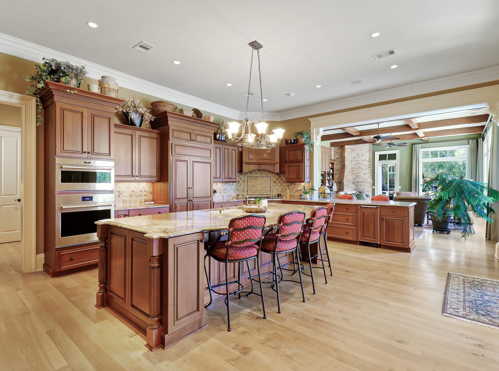 wet bar area includes a wine fridge, beer fridge, and an ice maker. The living area is open to the kitchen for entertaining and features walls of windows, a built in aquarium and an entertainment center. This room also opens through French doors to the patio. An arched hallway leads you to the private master wing and office. The very spacious master suite offers river views, outside access, 2 enormous his and hers closets, an exclusive laundry, a double vanity, walk in shower, and garden tub. The separate office also offers outside access, stunning views, and custom cabinetry. Back down the hall, on the opposite wing, you will find 3 more bedrooms, each with an en suite full bath (one currently being used as a theater room). This home can be purchased fully furnished as well, creating a seamless transition for a second home or a fresh start. There is also a gun room with custom cabinetry, a large pantry, and a mudroom connecting you to the garage. The 5th bedroom sits above the garage with separate access, and creates a unique opportunity for private guest quarters or a Mother in Law Suite. Below, an enormous 3 car garage with pull through doors on each side is finished with epoxy flooring. The home is also protected by upgrades such as a whole home generator, whole home camera system, 500 gallon propane tank, and a new grinder pump for the septic. The 3 AC units have been recently replaced, and the 2 Rennai hot water systems are new as well. This deepwater estate is only minutes away from the conveniences, golf, beaches, fine dining, and shopping of Kiawah Island, and it is just 25 minutes from Downtown Charleston. Showings are by appointment only.