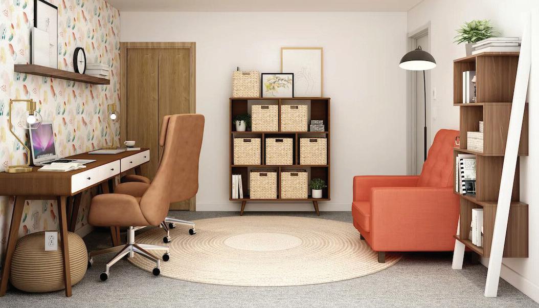 Home office clutter can impact productivity by negatively affecting focus. The more overwhelmed the space is with spare books and loose papers, the less productive the worker will likely be. However, while minimizing clutter is important, make sure to add pieces that personalize the space.