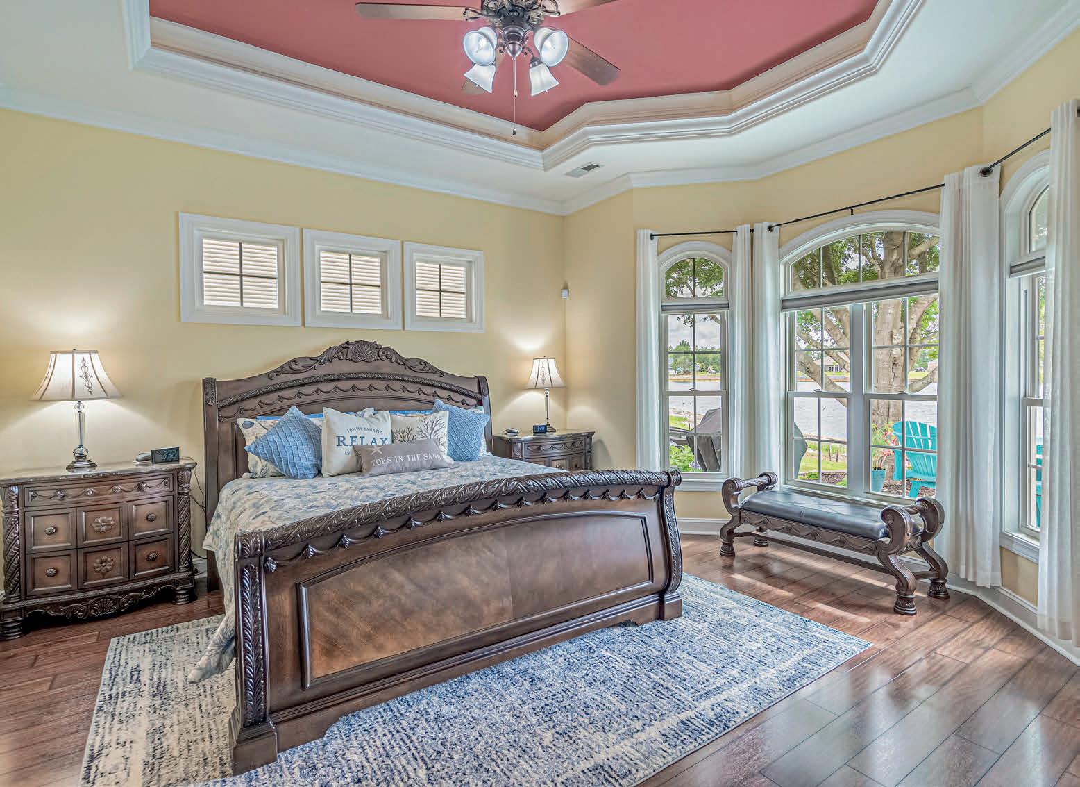 view of the lake, high volume tray ceiling with recessed lighting, a bay window, His and Her walk-in closets, an ensuite bathroom with motion sensor automatic lights, Jacuzzi tub, double sinks, linen closet and a roomy tiled shower. AND THE PORCH - you will feel like you have been transported to a 5-star resort when you are sitting on the screened in porch watching the sunset over the lake. The spacious 3 car garage also includes a workshop station. The Wild Wing community is surrounded by the 27-hole golf course with first class amenities including four resort-style pools, lighted tennis courts, fitness area, recreation facilities, 180 acres of freshwater lakes, private day docks with boat ramp and parking, onsite boat and RV storage and is in a great location with quick access to outstanding schools, the beach, shopping and restaurants.