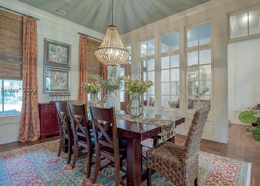 Situated on Log Bridge Creek, this home boasts stunning views of both tidal marsh and creek, a rare feature of Charleston area homes. Enjoy the view from the screened back porch and patio, living room and 2nd floor owners’ retreat. The water is easily accessed a few steps behind this property via an HOA easement. Built in 2017, this home is in great condition. The first floor flooring is ceramic wood-like tile. It is a very nice upgrade. The 2nd floor has a plethora of bedrooms and a flex space perfect for a music room, play area or library. The 3rd floor has another bedroom/ bathroom along with an extra large flex space perfect for teens. Crabbing, fishing, dolphin watching, kayaking from the backyard along with amazing sunset views over the water