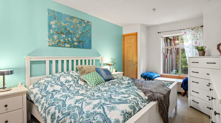 This efficient 2-bed, 1-bath condo is steps from Semiahmoo’s amenities. It features vaulted ceilings, natural light, a private patio, and a kitchen with stainless steel appliances. The spacious primary bedroom has ample closet space, and the versatile second bedroom has French doors. Includes covered parking and extra storage. Enjoy easy living with a well-run association.