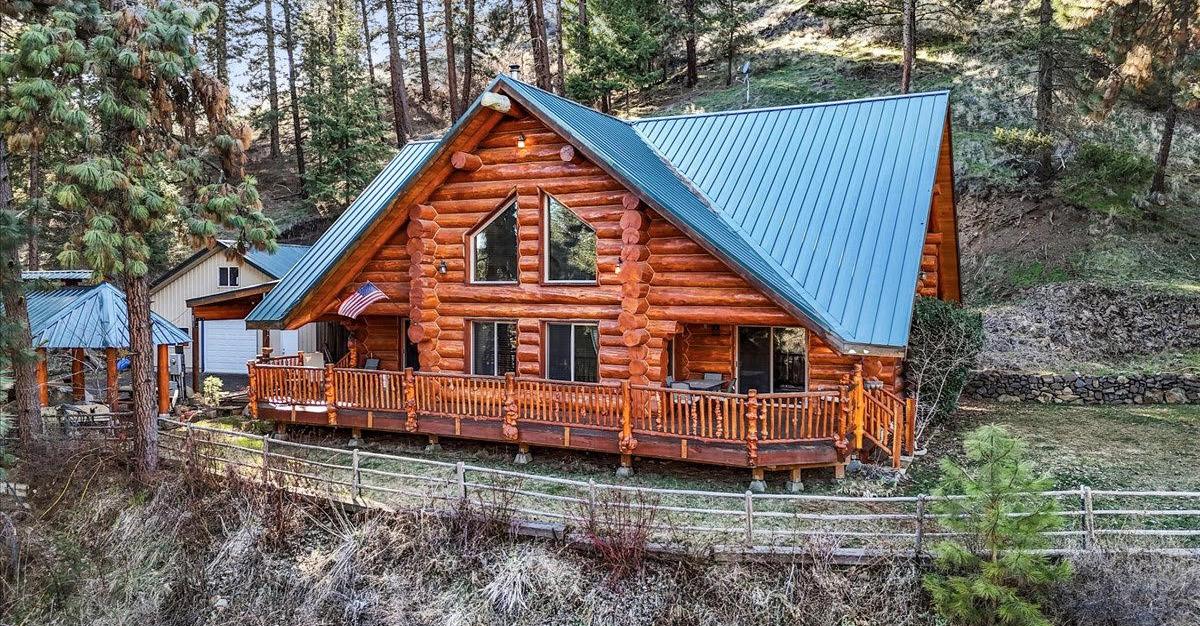 Offered at $1,600,000 Stunning Mountain Retreat located in the Methow Valley. Near the Nordic trail system and yet minutes from the charming town of Winthrop. The home was built with massive white spruce logs, soaring ceilings and cozy spaces throughout. Three ensuite bedrooms, large entertaining kitchen, living area with impressive stone fireplace and a loft game room for activities. The large three car garage has a finished 798 sf studio above. Lifestyle is perfected when you live in the Methow.