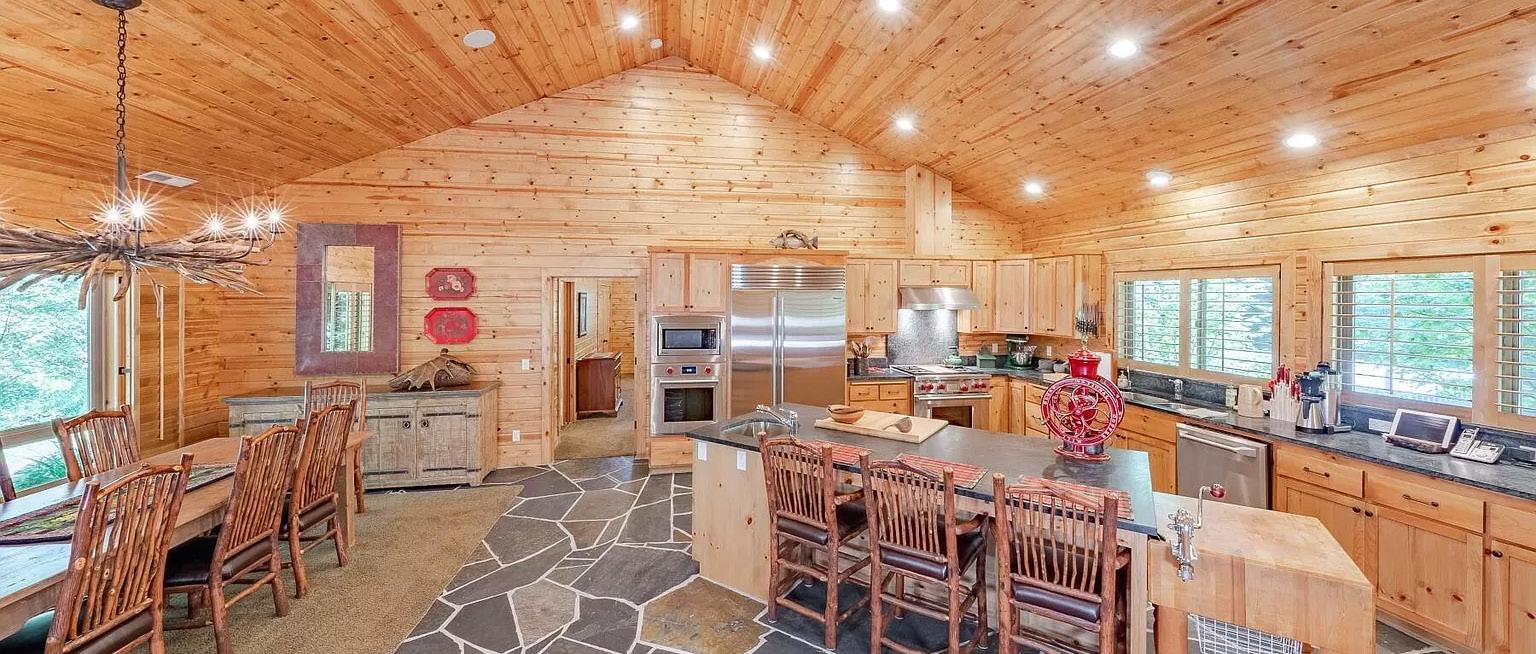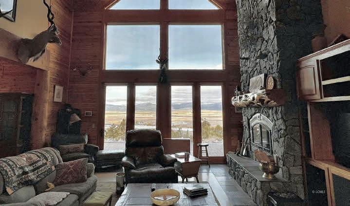 3 beds | 2 full baths | 2 half-baths | 3,594 sq ft | $1,500,000. Only six miles from Lakeview, Oregon and local ski area! Exquisite Log home on 229+/- wooded acres. Stunning panoramic views of the valley & mountains. Lovely chef’s kitchen and large master suite. Great Room with 2-story windows, beautiful rock chimney, Cherry hardwood flooring throughout, custom cherry doors with 42” entry system, Doug Fir Beams, & cedar clad interior walls. 1400 sq ft 3 car garage with heated floors & tons of storage.