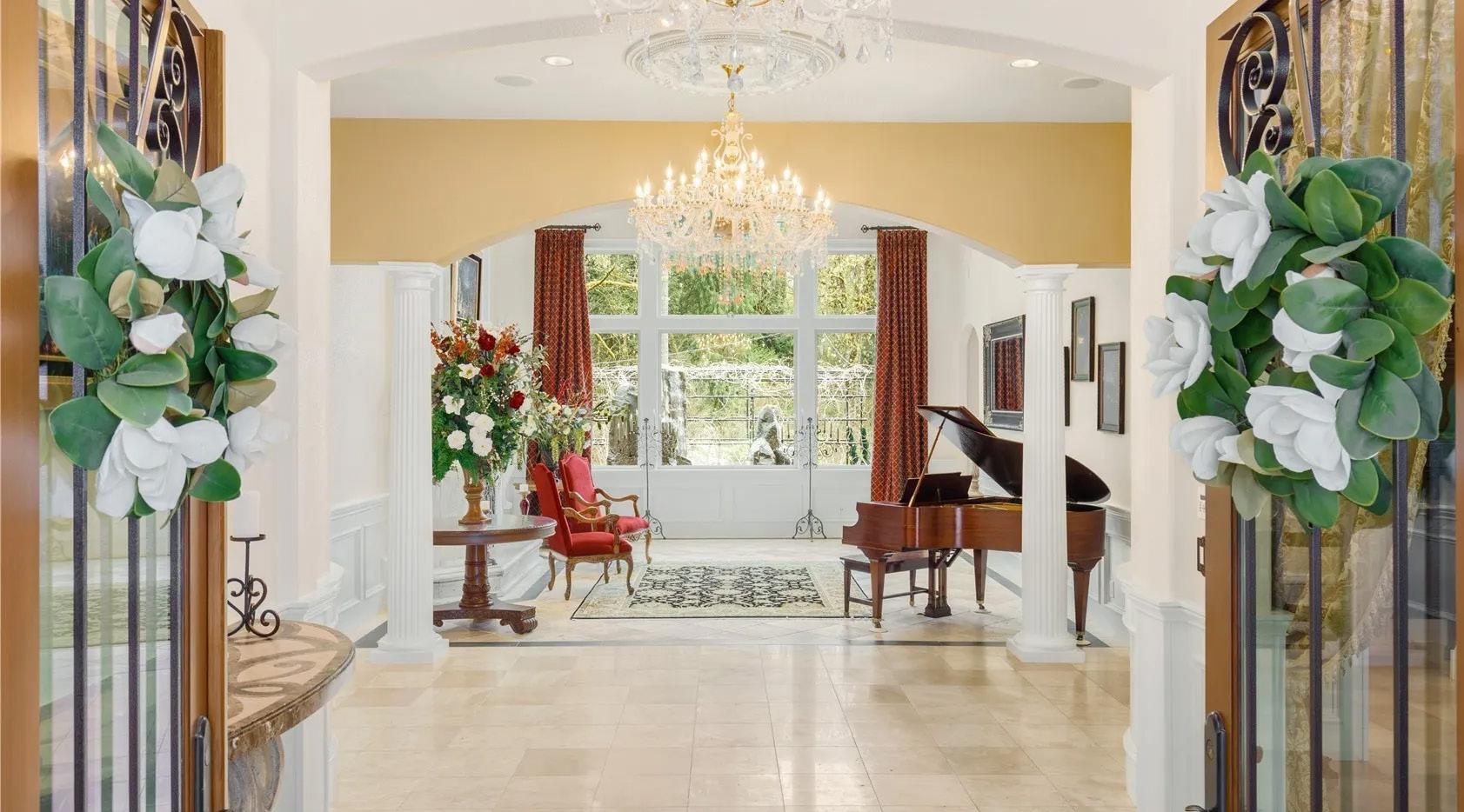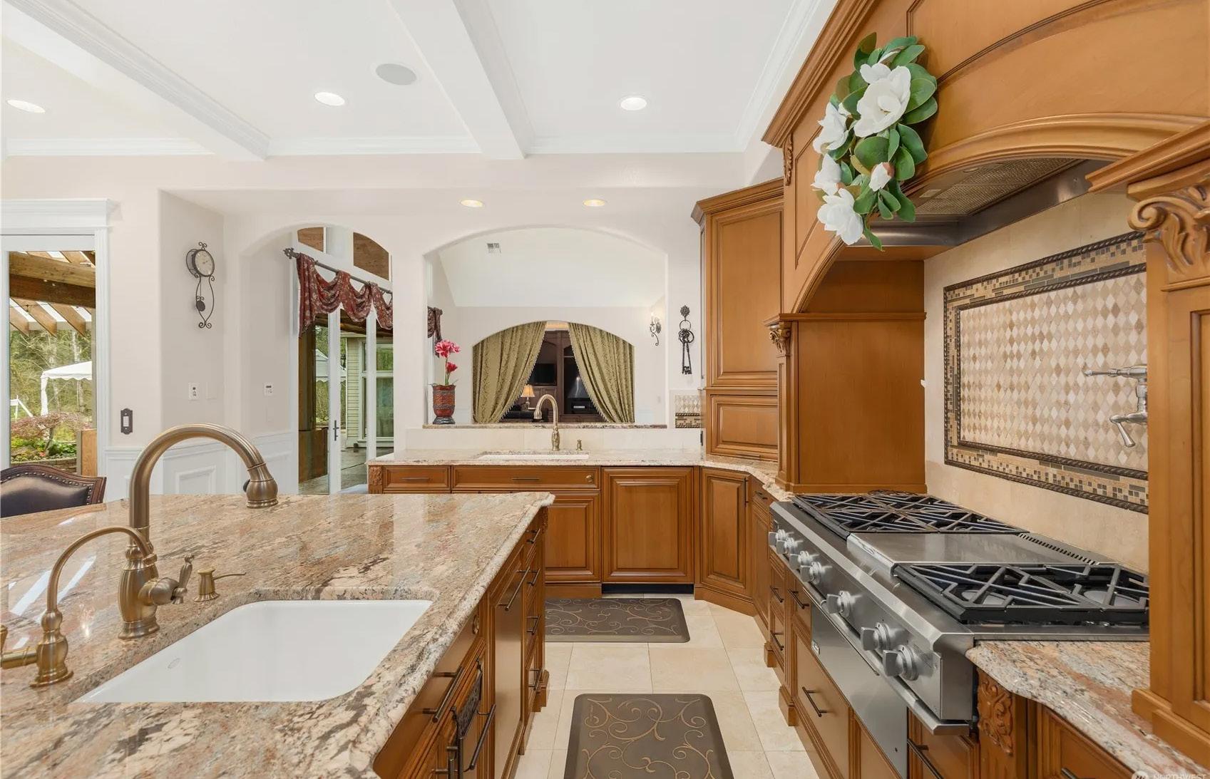 Once in a lifetime opportunity to own an exquisite 12,490 sq ft Mediterranean estate sitting on over 5.9 acres of majestic land in the coveted low traffic neighborhood of Maple Valley. Poised behind a gated entry and down a private driveway sits this extraordinary 6bd, 6.25bth home with 5 car garage. The primary home boasts striking 22’ ceilings, a 20’ gas fireplace, formal dining room, library, home theater, gym, conference room, formal office with a secret filing room, jacuzzi/spa, panic suite, and an elevator to all three floors. The epicurean island kitchen will impress the most discerning of chefs with high-end appliances, walk-in butler’s pantry, and a breakfast nook. Amenities and land unparalleled with this exceptional home!