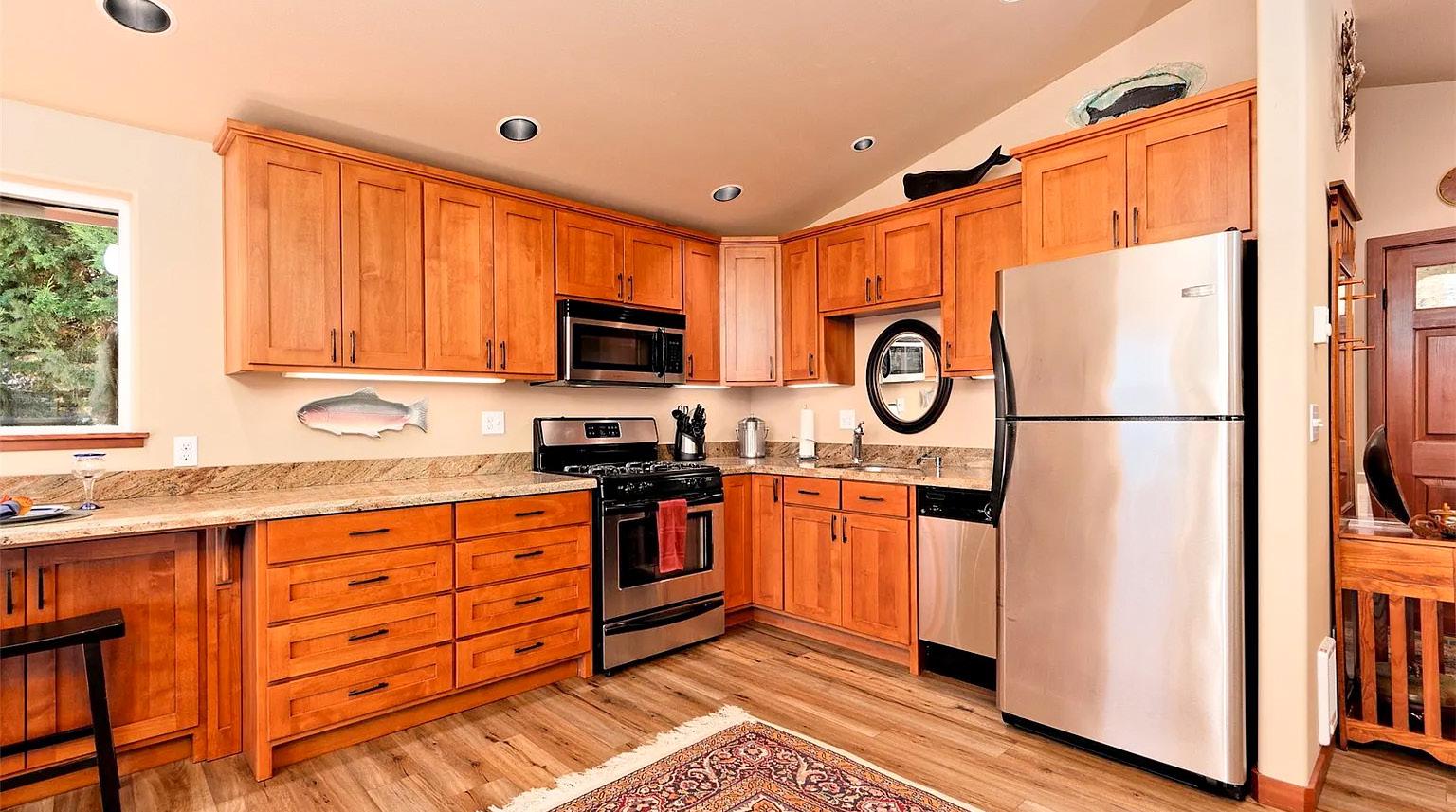 This stunning custom built 4 bedroom, 2.5 bath home has everything you need for a perfect Coastal Cottage. The open great room with built in cozy fireplace and custom cabinetry is ideal for entertaining. The chef’s kitchen & dining area lead to the patio framed by french doors making it a perfect gathering space. Fenced yard equipped with a fire pit, outdoor shower and extra seating has privacy in the pine trees of Pacific City. Relax in your king suite that boasts a jetted tub and rainfall shower. In addition, 3 bedrooms, plus a private bath, on the other end of the house give your guests a private & relaxing stay.