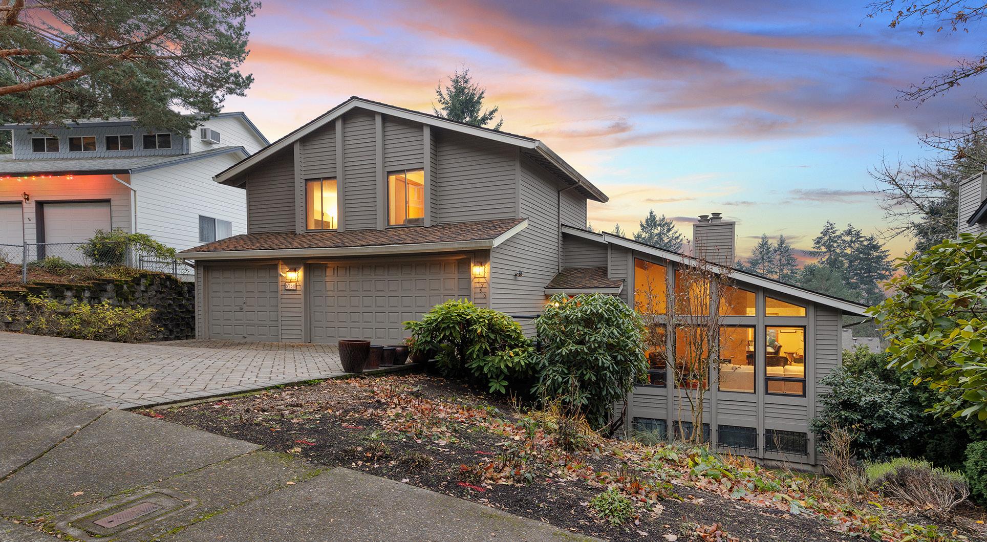 Stunning Mt Tabor home setup beautifully for entertaining, home office, & separate living quarters! New hardwood & paint throughout, remodeled kitchen & master bath w/ new sauna, multiple living spaces that flow into each other, 3 fireplaces, wetbar, panoramic views from most windows & expansive decking. City lights & territorial views for miles, across from Mt Tabor Park & close to everything, this spacious home has spectacular architectural design, gorgeous woodwork & floor to ceiling windows.