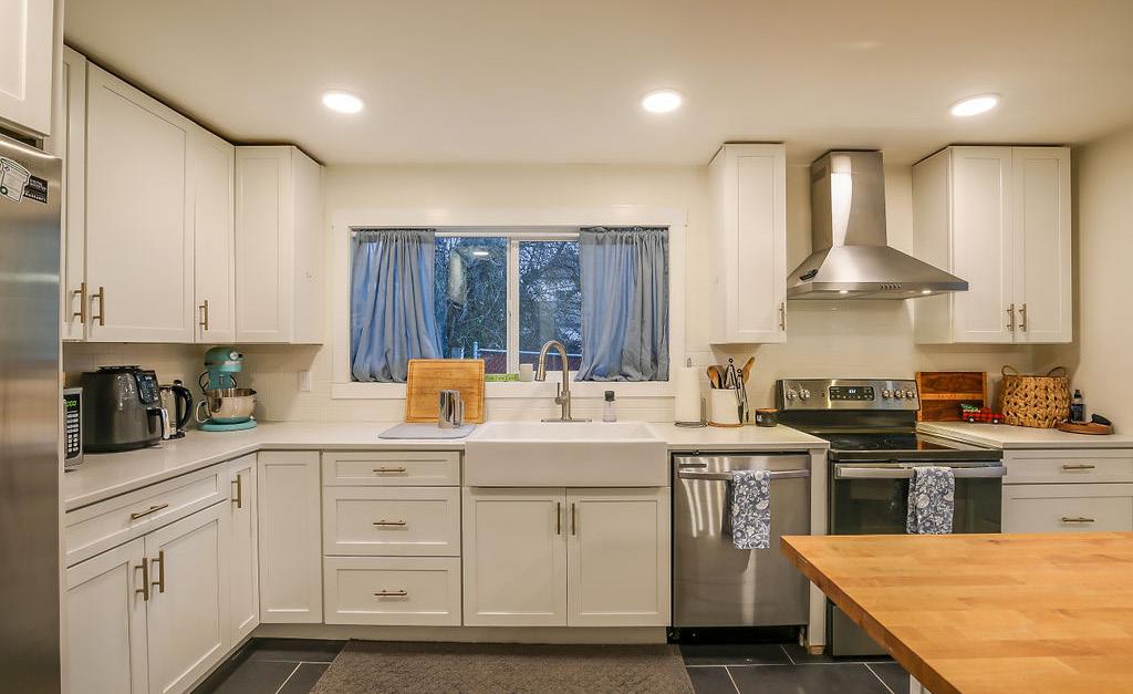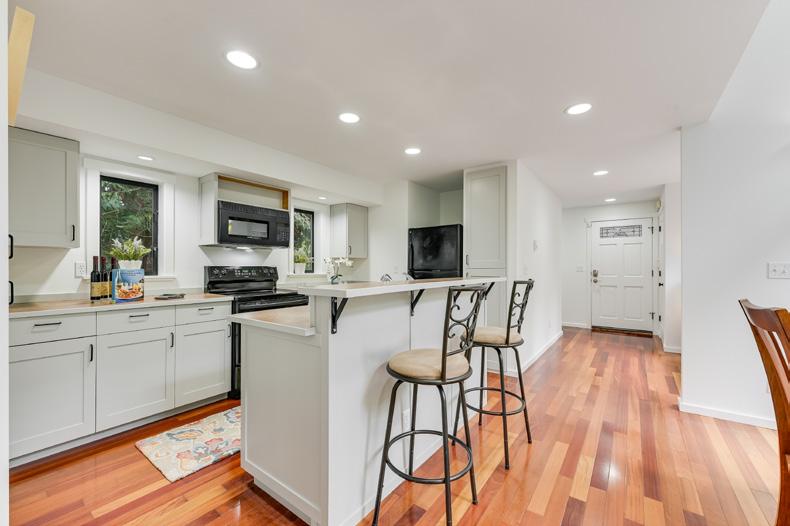 Top to bottom remodel with exceptional finishes throughout- Plumbing, Electrical, heating systems +++ . Large covered front porch, open concept main level with wood floors throughout. Dreamy custom kitchen has plentiful work space, quartz counters, & gas range large single basin sink. Back deck overlooks peaceful green space. Upper level bedrooms flood with natural light. Lower level has private entrance, tall ceilings- bed/bath, living area & kitchenette. Office w side entry off back of garage- ideal work @ home space!