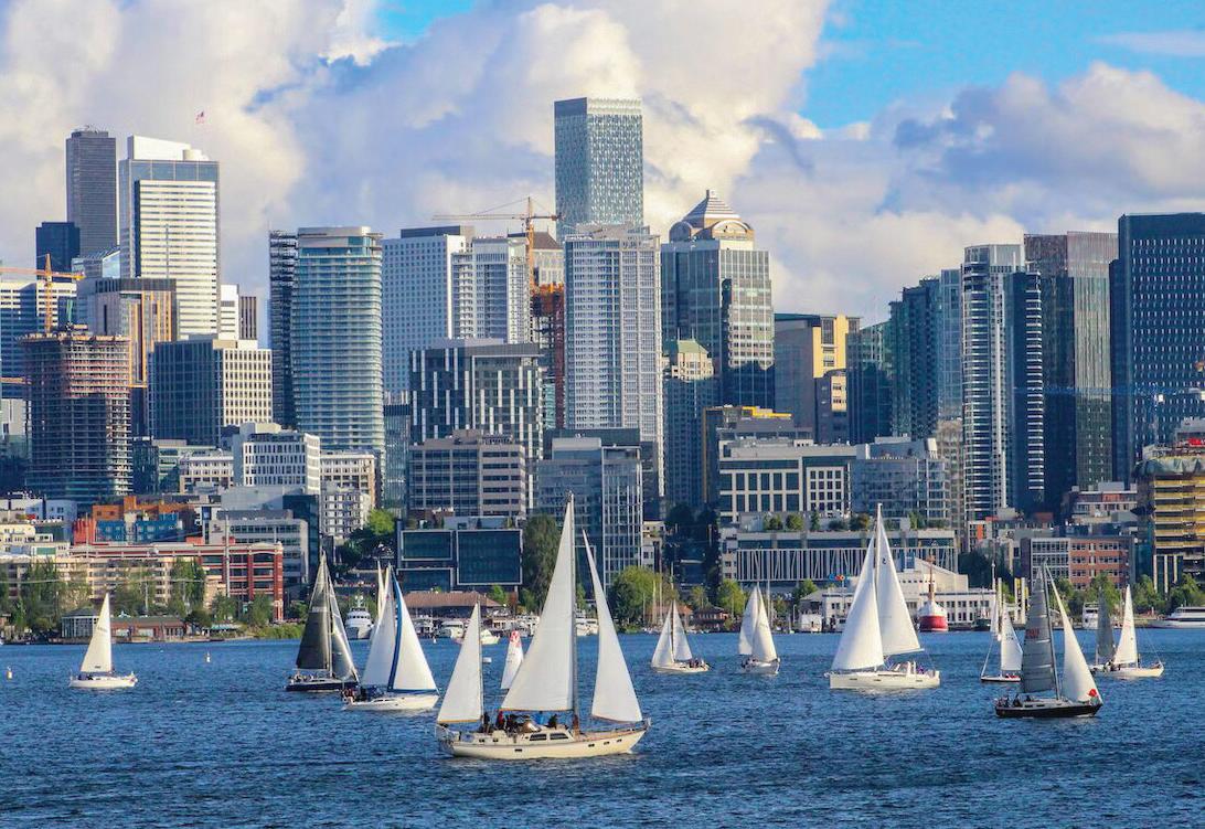 Lake Union is a popular destination in the heart of Seattle, surrounded by many buildings, restaurants, and bars. It is sought out by sailors and those with small boats during the warmer months, and its array of freshwater fish makes fishing a common local pastime.