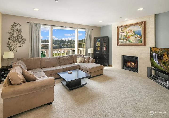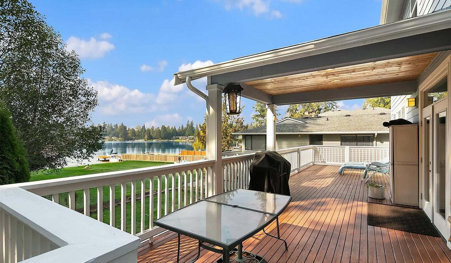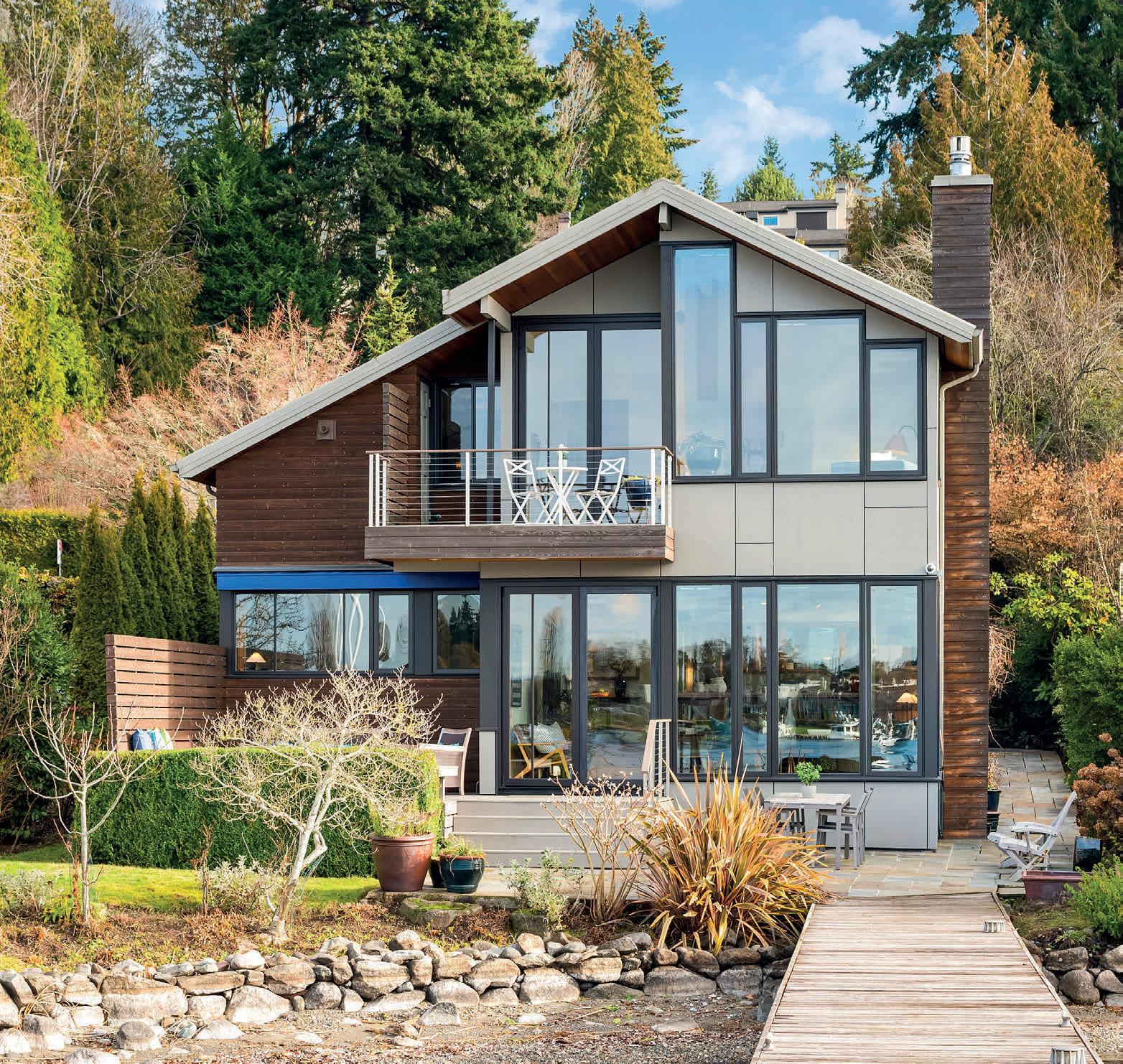 Refreshed by Prentiss Architects in 2015, this PNW contemporary home features walls of gorgeous lake views and a detached, income-generating ADU. 2-Car garage with upper workshop could become your next office or gym! Custom craftsmanship throughout with an open floor plan, vaulted ceilings with wooden beams, clerestory windows, and beautiful architecture. One bedroom on main with 3/4 bath, second upstairs with southerly lake views. Your primary suite encompasses the lake side of the home upstairs with sweeping views of Lake Washington and the Olympic Mountains.