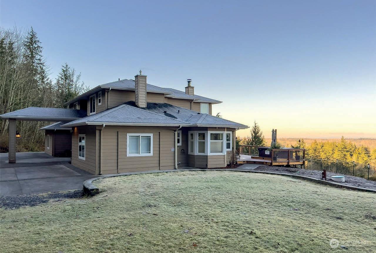 Great location! This 3 beds, 3 baths, 2834 sq ft home sits on 5 acres w/ a large wrap around deck & patio below to enjoy the amazing view! Interior has hardwood floors, pellet stove, kitchen has granite counter tops, tile flooring, pantry w/ pull outs, breakfast bar & garden window. Master bed w/ vaulted ceilings, dual closets & large windows. Daylight basement w/ a large family room area & bathroom. Fenced garden area w/ raised beds & fruit trees. Brand new water heater. Neighboring lots for sale.