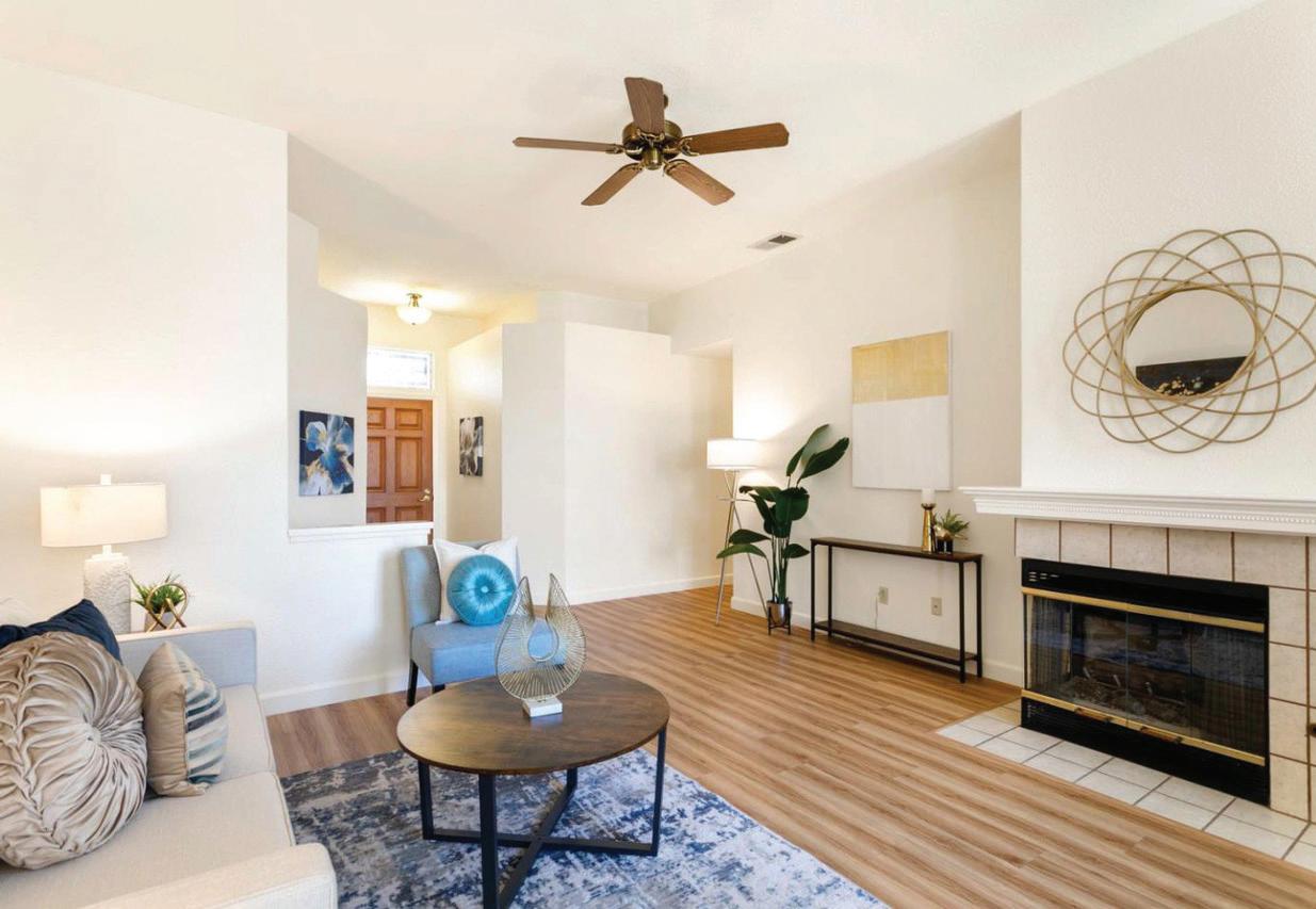 Delightful Willow Glen home with eyecatching curb-appeal. Formal entry leads to living/dining area featuring a stunning granite wood-burning fireplace. Ideal for outdoor living and entertaining with direct access from living area through double slider to lush cottage garden oasis. Beautifully upgraded kitchen with quartz counters, contour tile backsplash, and stainless appliances. Charming breakfast area, plus convenient inside laundry room. Spacious primary bedroom with wood slider opening to private patio retreat. Carpet-free home with oak and granite flooring, fresh paint, brand new lighting and baseboards, newer double-pane windows and doors, highend blinds, crown molding. Professionally landscaped front yard features colorful, drought-tolerant plantings.