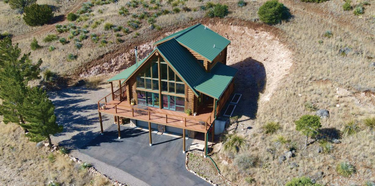 This amazing 3,000 sq/ft log home, custom built in Montana and re-assembled in southwest New Mexico on 217+/- acres, with Forest and BLM boundaries. The million dollar views and the extreme attention to custom detail, make this log home and frame guest home incredibly unique! Construction and moving costs alone would be staggering. Extraordinary log craftsmanship and extensive native stonework is exhibited throughout in the hand hewn juniper railings and hand forged steel hardware throughout. Power is off grid and boasts a 14 KW Solar array. Bonus features include: a detached garage and use of the Association owned 6,000 sq/ft Headquarters, for guests and entertaining, and shared use of the almost 7,000 acre Greenwood Canyon Ranch.