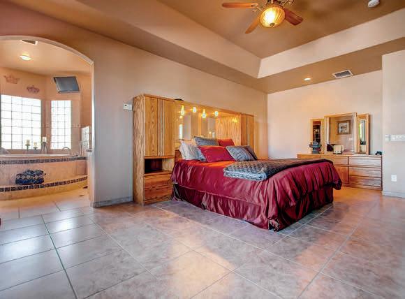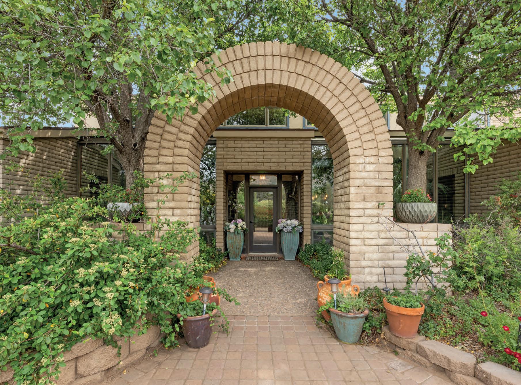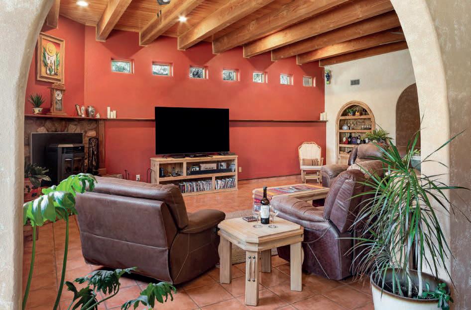Located in an idyllic, prominent Eastside location on Upper Canyon Road, this 4BR/5BA (3BR/4BA main house and 1BR/1BA attached guest suite) appx 3,800 sq ft fully renovated/new construction residence on appx .45 acres has clean lines and an openconcept design with a large chef’s kitchen with custom cabinets, stainless appliances, a farmhouse sink, a large center island, and a casual dining area. The grand living room and dining room with vaulted ceilings is light and bright with a plethora of windows. There are marble tile and wood floors throughout, an exceptional, grand master suite with walk-in closet, artisan stained glassed windows, and en-suite bathroom with separate bath and glass shower. There is a privacy wall in the front and back, delightful outdoor portal/ patio alfresco dining areas, and a spacious oversized one-car garage with extra storage space. The property is situated on Upper Canyon Road, across from the Santa Fe River Park and Cristo Rey church, one of the most notable buildings designed by famed Santa Fe architect John Gaw Meem. The church was one of the most ambitious adobe buildings ever undertaken in New Mexico, requiring 150,000–200,000 individual adobe bricks, and is one of the largest adobe buildings in the US. Cristo Rey church is also notable for its historic altar screen, the Reredos of Our Lady of Light (carved in 1761) which is listed on the National Register of Historic Places.