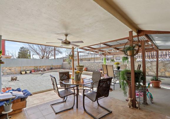 Welcome to your spacious corner lot oasis! This stunning home boasts almost 9,000 sq. ft. of lot space, providing ample room for outdoor activities ,dog run, and RV parking. Step inside to discover 2,358sq. ft. of luxurious living area, featuring 3 bedrooms, 2.5 baths, and 2 inviting living areas perfect for relaxation and entertainment. Enjoy the versatility of a flex room, ideal for a home office, gym, or playroom to suit your lifestyle needs. Stay cool year-round with the comfort of refrigerated air conditioning. Solar panels offer energy efficiency and reduce electric bill. Step outside to your expansive backyard retreat, complete with a serene fountain and a charming bar area, creating the perfect ambiance for outdoor gatherings and summer soirées. Large storage in the back which offers plenty of room to store items. Conveniently located in East El Paso, this home offers both tranquility and accessibility. Don’t miss the opportunity to make this your dream home!