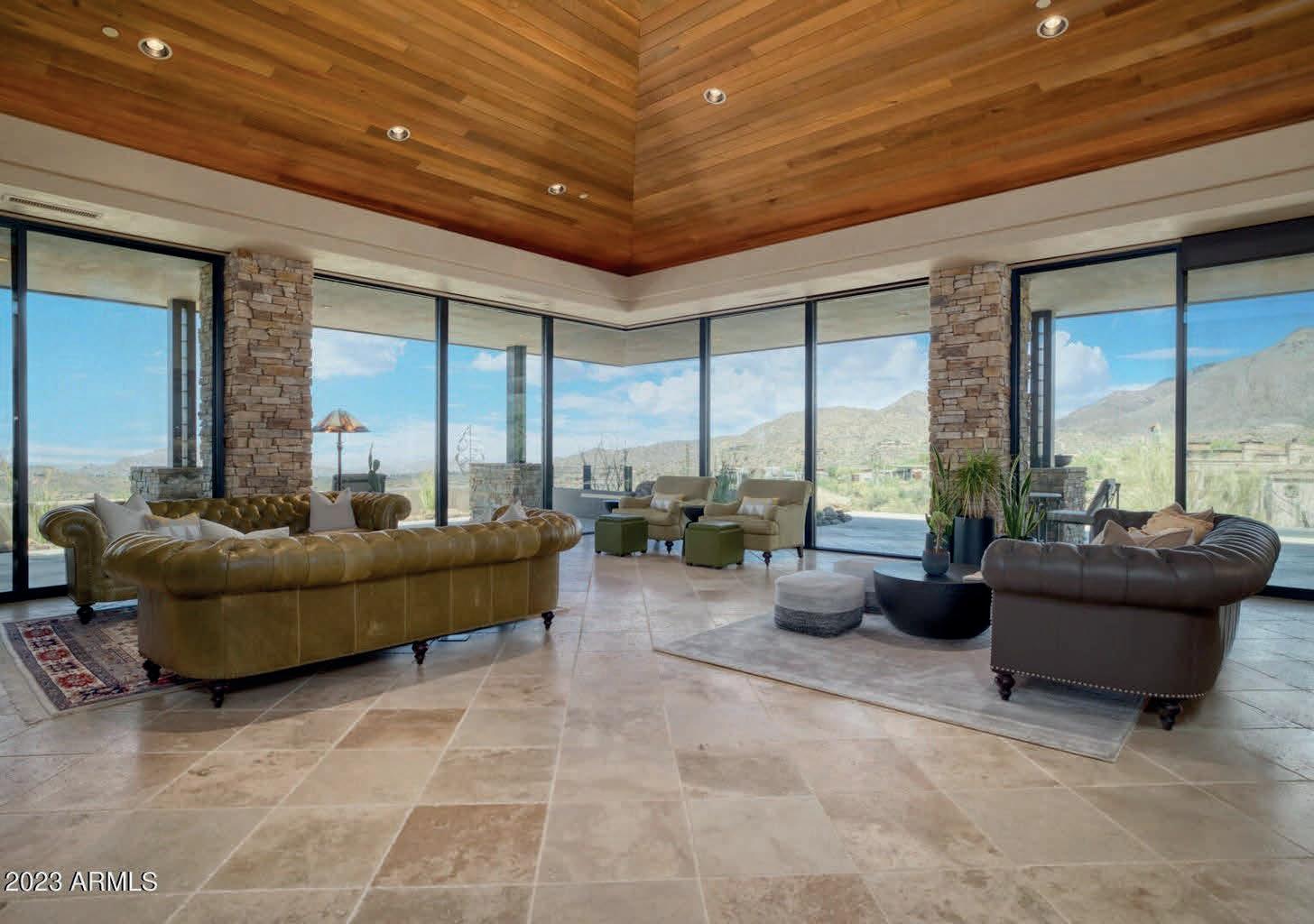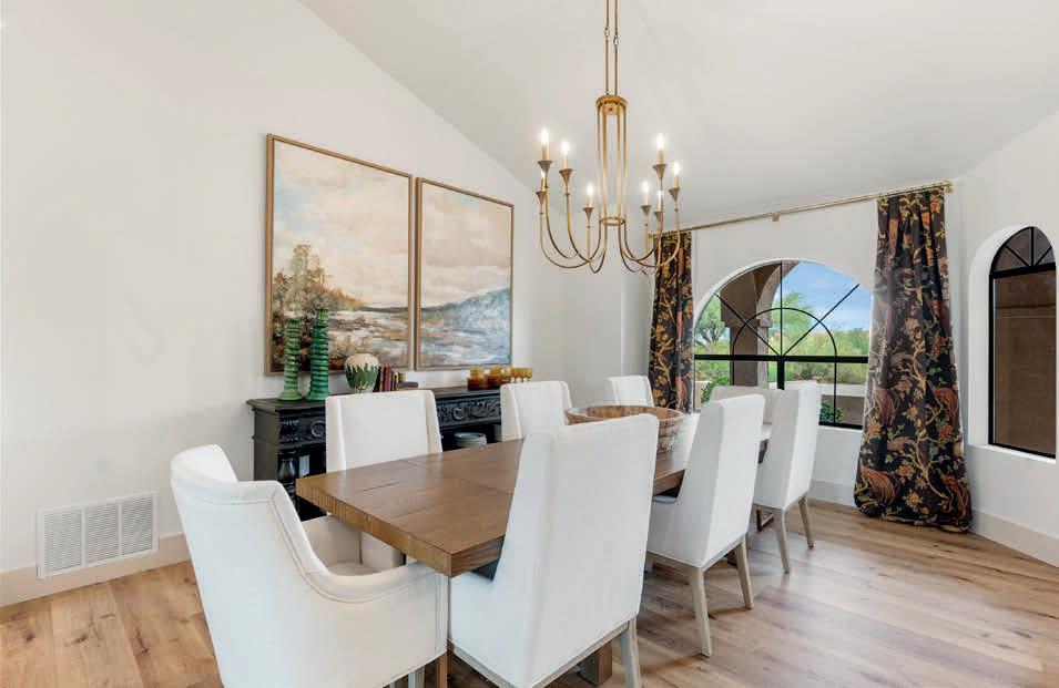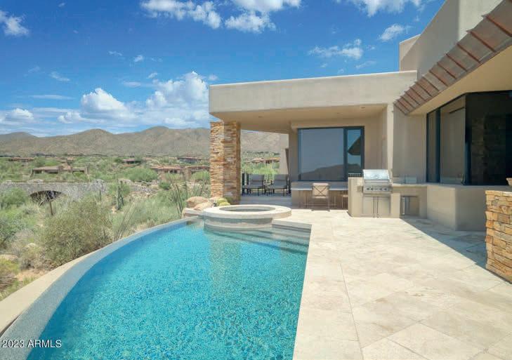 Introducing a stunning renovation nestled in prestigious gated Pinnacle Peak Estates. This beautiful home combines timeless charm with contemporary sophistication, offering luxury living throughout the completely updated retreat that was professionally designed and curated to create an impeccable Santa Barbara farmhouse design catering to the discerning tastes of luxury buyers. The inviting entrance opens to soaring ceilings adorned with wood beams, accenting a spacious floor plan with new flooring, new lighting and new smooth coat wall finishes, freshly painted in a neutral tone and showcasing the cozy great room centering around a restored bee hive fireplace and seamlessly opening to outdoor areas with retractable doors. Gourmet enthusiasts will delight in the stateof-the-art chef’s kitchen featuring premium appliances including an Italian gas range, custom cabinetry, top-of-the-line fixtures, Quartz and granite counters and the custom tile accents embracing the timeless southern California farmhouse style. The bathrooms have been completely redone as well with new cabinets, fixtures, lighting, toilets, showers and flooring. Situated on over one acre and surrounded by breathtaking views of Pinnacle Peak Country Club golf course and the McDowell Mountains, this home is the perfect winter retreat or family home in the Paradise Valley School District. Dining, shopping and hiking are conveniently located nearby.
