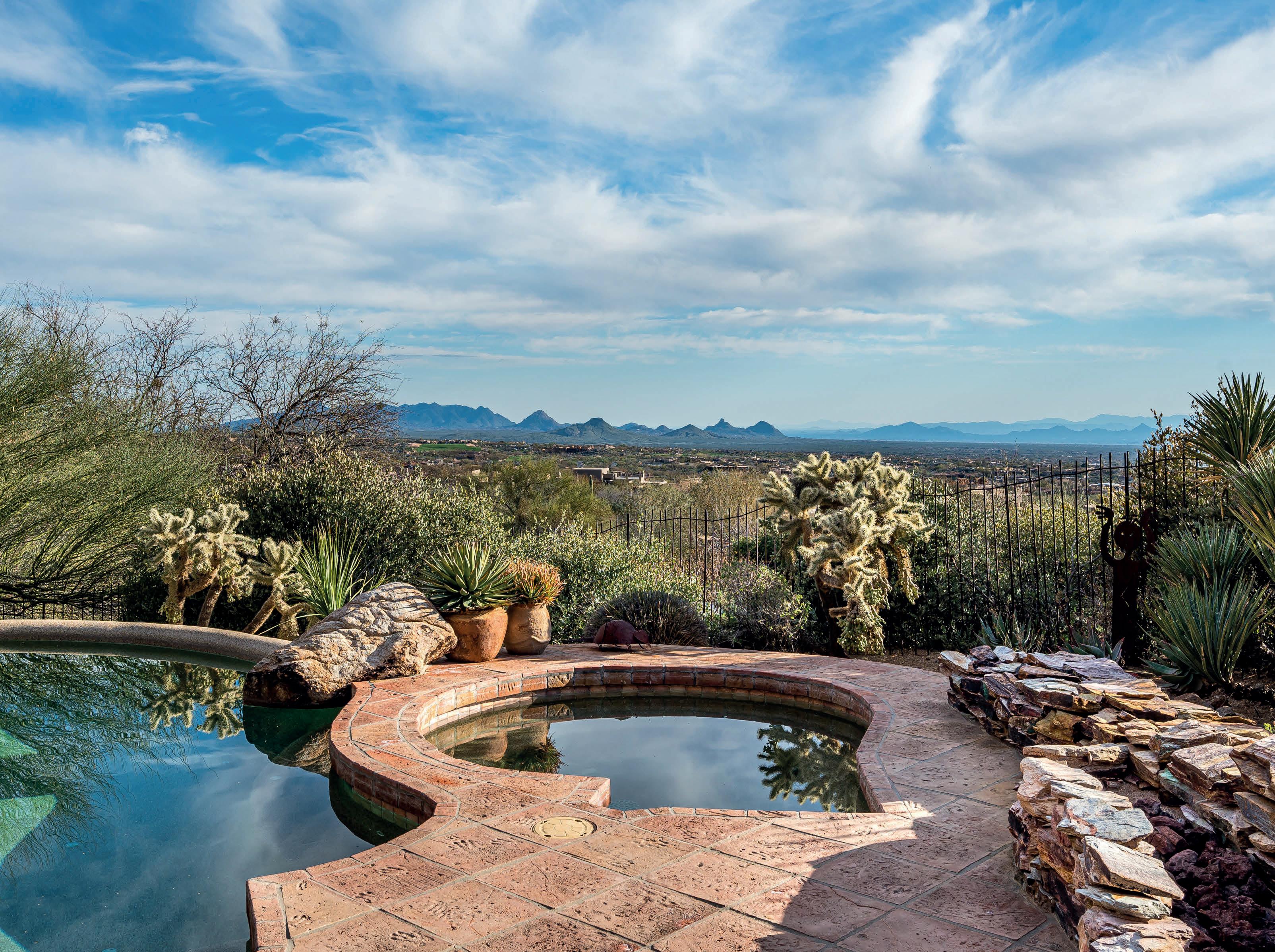 Desert Mountain Golf Membership available with this exquisite Allen Tafoya designed Masterpiece in the High Sonoran Desert! At an elevation of 3,400 ft, this 4,684 sq ft luxury estate is situated on an elevated lot with boulder outcroppings offering unobstructed city lights, mountains, sunsets and valley views. This one-of-a-kind home has 3 en-suite bedrooms in the main home + separate casita with attached garage, dining room, & separate cozy hearth room. Exceptional craftsmanship throughout with wood and stone flooring, beautiful custom wood beams and columns, open floor plan, and 5 fireplaces. The uniquely designed kitchen offers saguaro spine wood cabinetry, and granite & butcher block countertops. Spacious outdoor living with private swimming pool, spa, fire pit & BBQ. Offered turnkey.