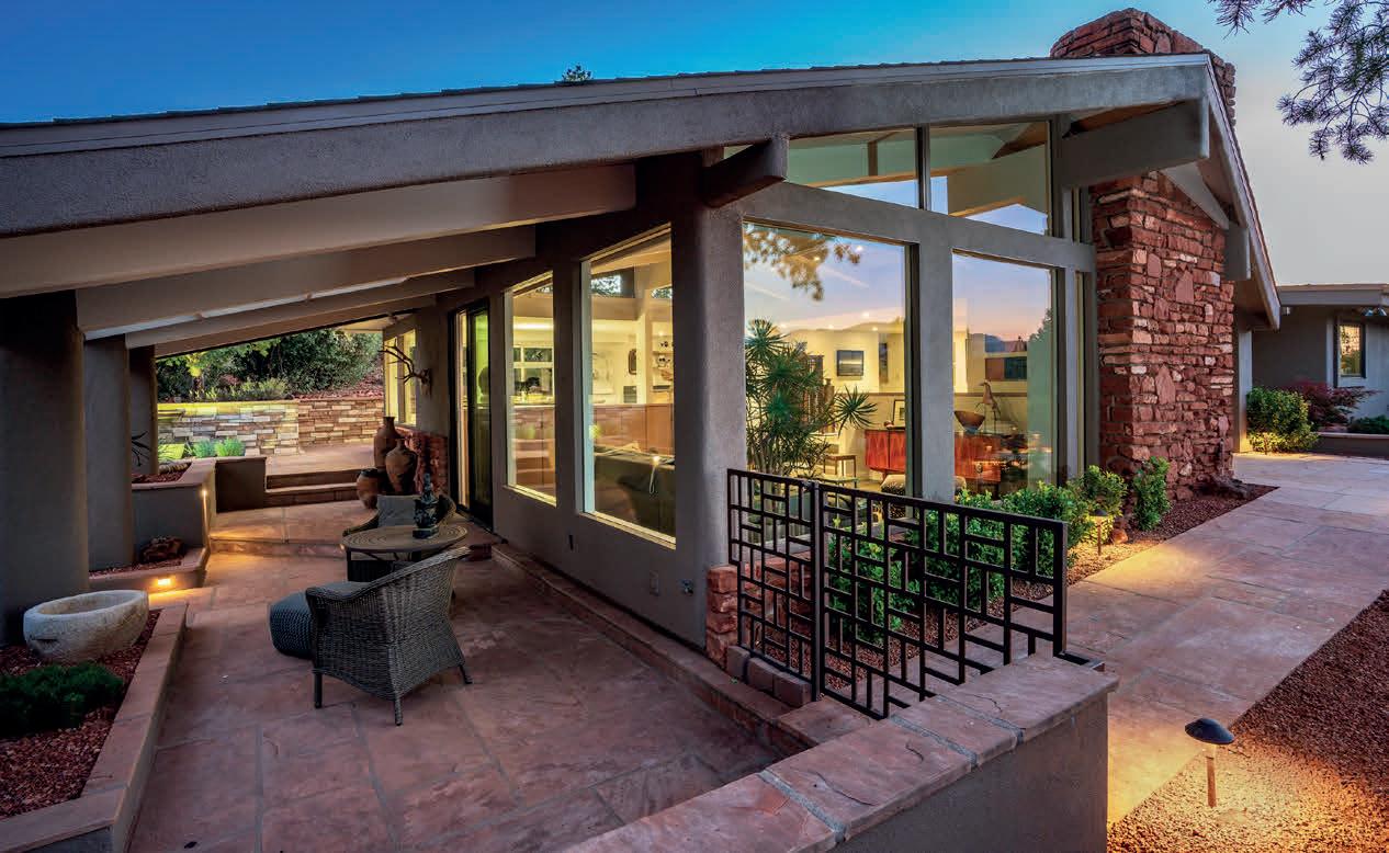 This immaculately remodeled West Sedona uber-private estate on acreage is a rare find. Over the top high-end rebuild of a vintage Mid-Century home in an equestrian neighborhood with 3.69 ac and room for guesthouse/casita. Designed by Sedona’s own Don Woods, this home features a large entertaining space surrounded by glass to foster a “treehouse with views” aesthetic. Recent complete remodel was done with modern styling and a discerning eye for detail. Extensive outdoor living space expands the livability of the home and encourages patio relaxation and dining in Sedona’s four mild seasons. Massive 37’ RV garage/studio was recently added, making an ideal Sprinter Van/car collection possible.
