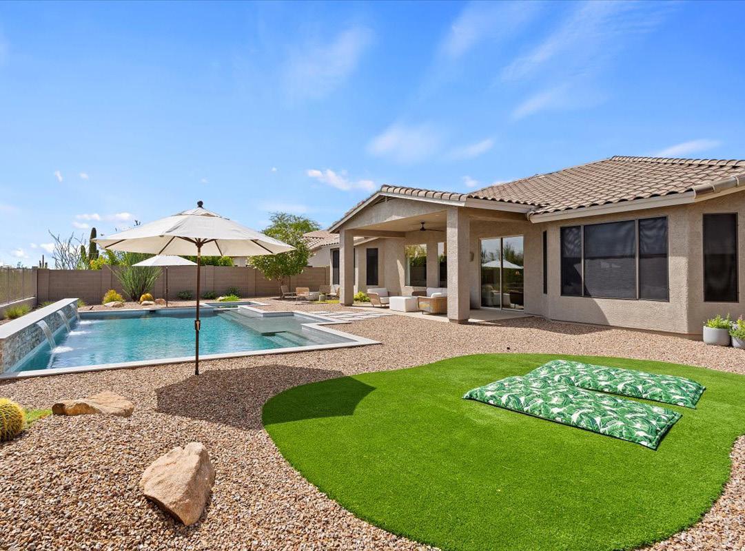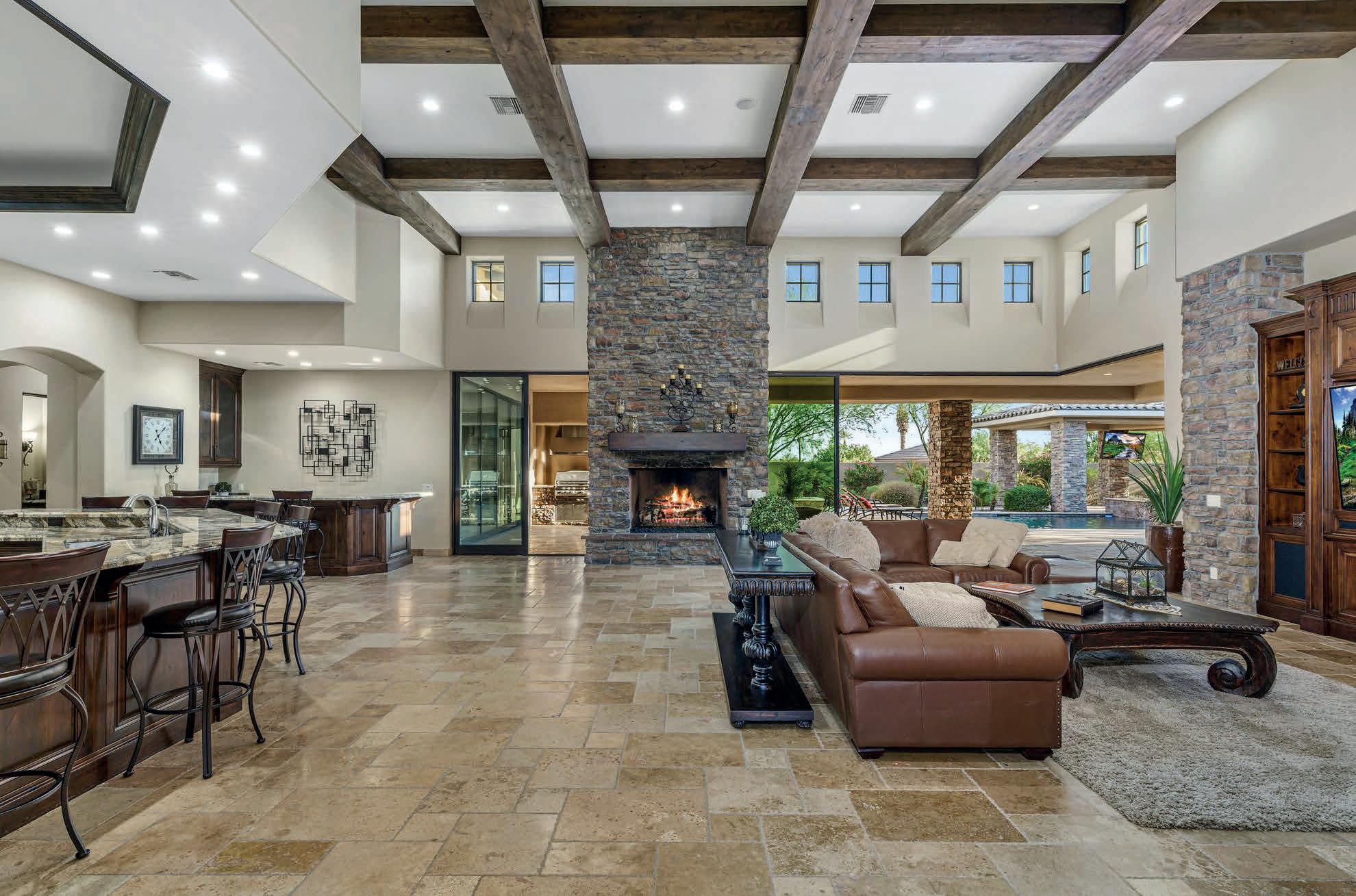 Nestled in the prestigious gated enclave of The Island at Fulton Ranch, this custom masterpiece is a testament to refined living. Capitalize on the rare opportunity to own in this highly sought after community where only one or two homes come on the market each year! Spanning an expansive 6,782 sqft., this meticulously maintained home boasts four spacious bedrooms with luxurious en-suite bathrooms, including amazing private attached guest house with its own private entrance, two office/den areas and large game/entertaining area that opens to courtyard and backyard. Immediately upon entering, you’ll be captivated by the rich, dark wood beams that traverse the ceiling, adding a touch of rustic elegance and architectural depth to the space. Designed with the entertainer in mind, this haven features stunning glass walls that effortlessly slide away, seamlessly blending the indoor living spaces with an opulent resortstyle backyard with expansive patio, stunning pool, hot tub, ramada and outdoor BBQ. Situated on a premium half-acre plus corner lot, this home offers an abundance of privacy. Whether you’re hosting an intimate gathering or a grand soirée, this residence caters to every occasion. The sprawling estate boasts an 6-car garage, perfect for showcasing your enviable auto collection or for storing weekend toys! The home’s prime location enjoys easy access to Loop 101& 202, Intel, Northrup Grumman and the corporations that line the bustling Price Corridor. Every convenience is just a stone’s throw away, ensuring work-life balance is easily achieved. This residence isn’t just a home; it’s a statement. Join us, and step into a world where luxury meets livability.
