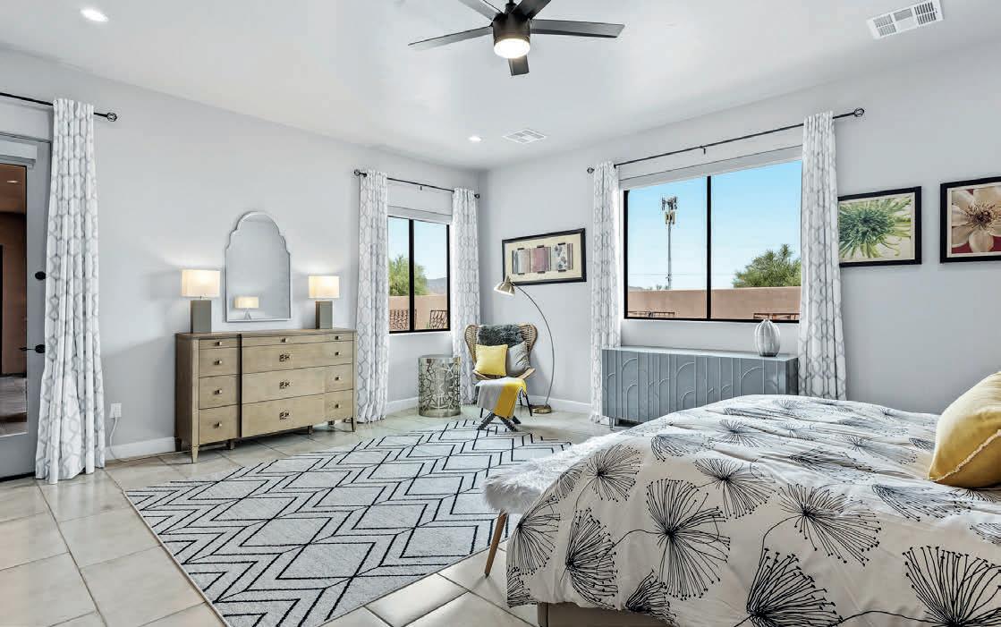 Enjoy stunning Red Rock views from this lofty perch! Built in 2020 this home offers many designer upgrades, modern finishes and decor . An expansive home with 4,400 sq ft, 4 EnsuiteBedrooms closetoClubhouseamenities.