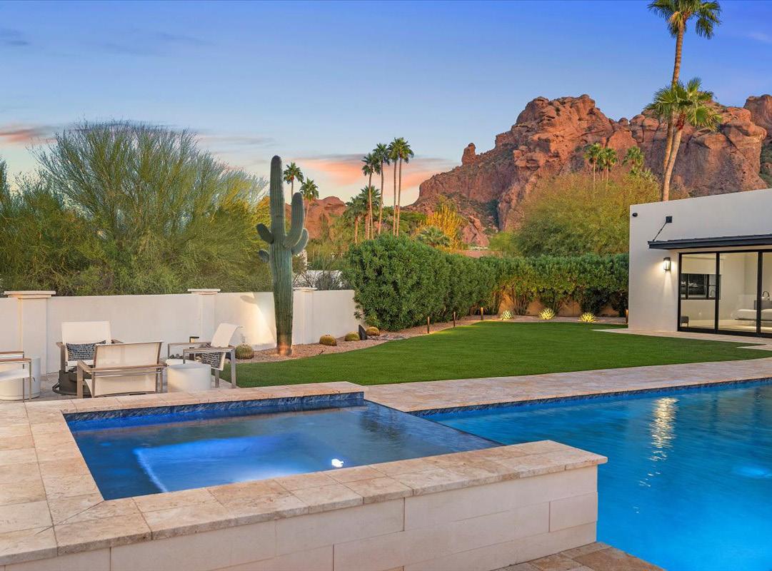 Savor this pristine home, totally remodeled in 2019-2021, on the 12th tee box of the Moon Valley Country Club golf course! Soaring 12 foot ceilings and porcelain wood-like flooring welcome you as you enter. The chef’s kitchen boasts a huge island, quartz countertops, custom cabinetry, coffee bar, and high-end appliances from Viking, Bosch, Profile and more. The massive open floor plan gives you room to reflect or to entertain in style. 5 bedrooms and 5 baths allow everyone a place to call their own. The building feels fresh with new windows & doors, 3 newer ac units, a new roof (2019) and a newer electrical panel. From the outside you notice the unique cedar garage door, resort style backyard oasis with 4 courtyards, covered patio, and the PebbleTec pool that looks right on to the golf course. Lush landscaping includes many mature trees and several varieties of fruit trees. All this with the convenience of being near golf, hiking, downtown events, shopping and freeways!