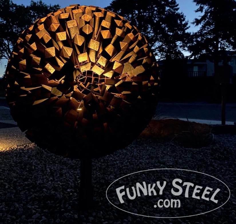 Meet the Earth Flower by Damian Pascetti of Funky Steel. Handcrafted in Albuquerque, New Mexico, these unique metal sculptures fuse artistry with nature. Each piece is an exclusive masterpiece, intricately welded into a perfect sphere.