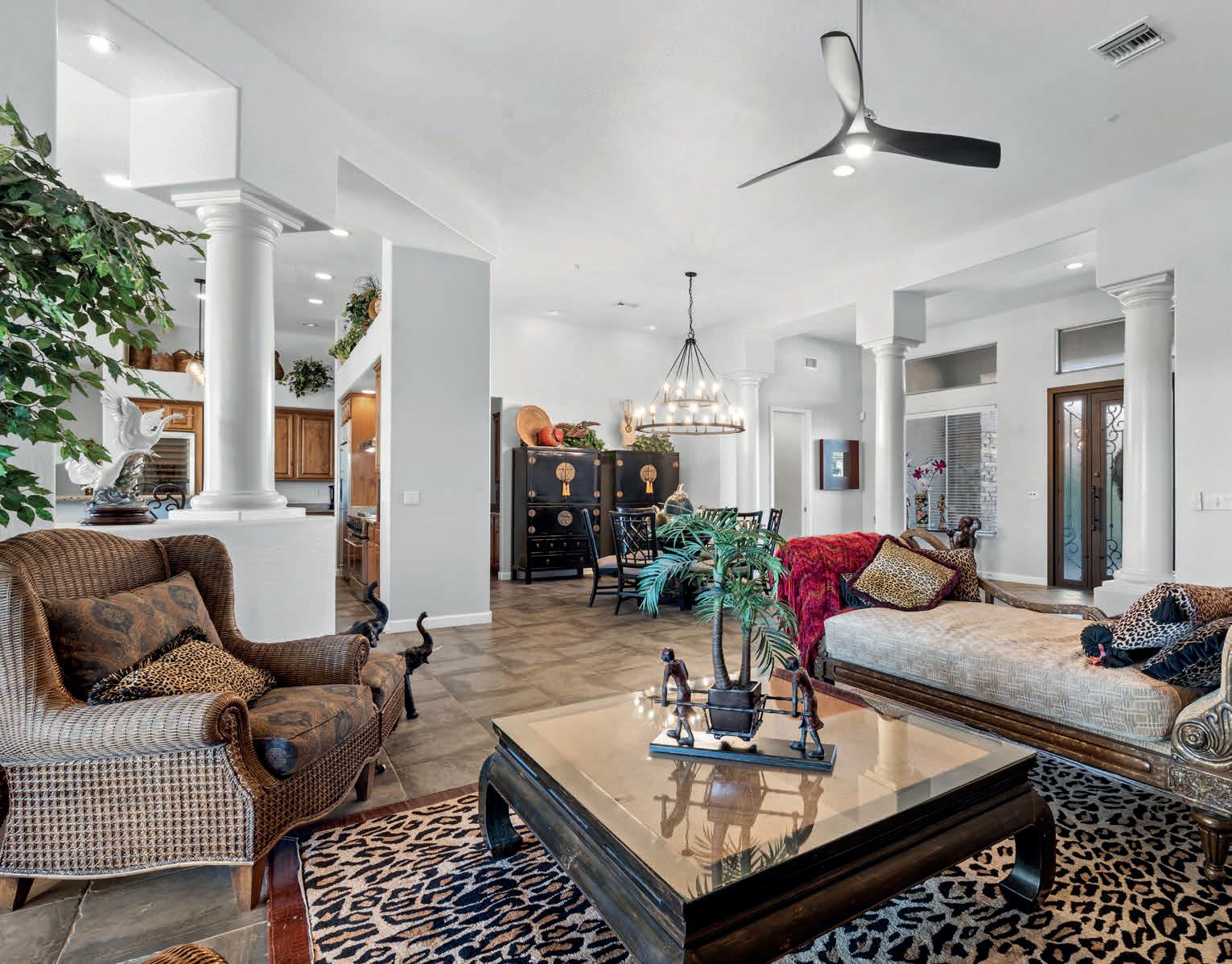 Enjoy stunning Red Rock views from this lofty perch! Built in 2020 this home offers many designer upgrades, modern finishes and decor. An expansive home with 4,400 sq ft, 4 Ensuite Bedrooms close to Clubhouse amenities.