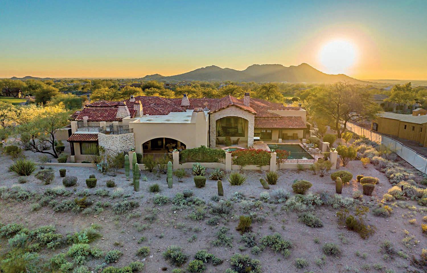 9 beds | 17 baths | 25,000 sq ft | 6.5 acres | $16,950,000. This Mediterranean masterpiece is in one of North Scottsdale’s most desirable gated communities. With unsurpassed city light and mountain views, it boasts livable luxury with handcrafted quality and design throughout including Venetian Plaster, Italian Travertine floors and reclaimed hardwood floors. This commanding estate has 9 bedroom suites, 17 baths, plus two lofts, and private balcony. Master bedroom suite offers a sitting area, elevator, double sided fireplace, two vanities, two water closets, two large private closets, extra large Jacuzzi tub and a large private balcony with fireplace and city views. Enjoy true Arizona living with the incredible outdoor living spaces provided by this luxurious estate, including spacious formal patios, gazebo, putting green, three hot tubs and more! This property boasts a huge two story exercise building with racquetball court, Olympic sized pool, tennis court, spa facility, 12 fully decked out garages for the car enthusiast and more!