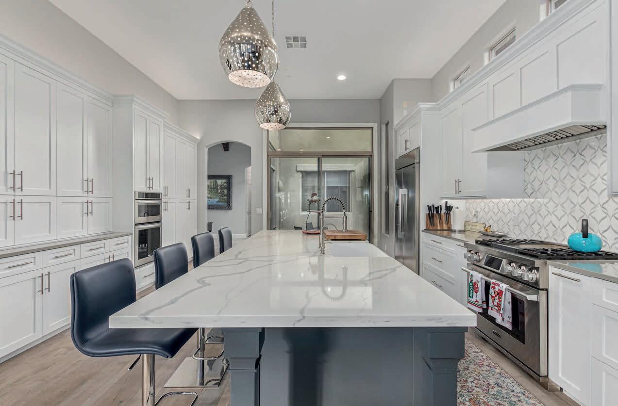 This home is laden with exquisite details curated for simply sumptuous living. Inside, find a large living room, an al fresco dining room with accordion glass doors, an impressive Italian marble kitchen with an oversized island, a large catering kitchen, a walk-in wine room, a gym and a theater. Outside, find a pool, spa, pool house with a pass-through bar for poolside cocktails and an attached casita. The 1,385-SF primary suite offers two extraordinary closets and a spa-inspired bathroom. All expertly curated by JSF Design Inc.