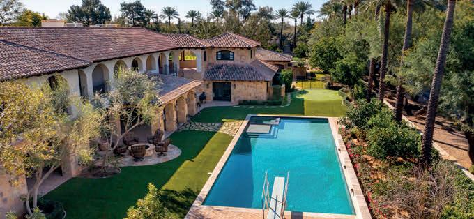 7 beds | 9 baths | 17,160 sq ft | 2+ acres | $10,900,000. This Paradise Valley Estate represents true timeless elegance and sits on a 2+ Acre beautifully manicured landscape with views of both Camelback Mountain and Mummy Mountain. Centrally located in the exclusive enclave of La Place this world class home was constructed with the utmost of care, choosing the finest of natural finishes handcrafted to perfection. Estate comes with a well, whole house reverse osmosis water system, and generator. The home was redesigned by Mark Candelaria and FULLY REMODELED IN 2013. The home was tastefully updated to the sought after light and airy elegant style of today with subtle accents like beautiful large steel framed paned windows and French doors throughout. The flowing floor plan was created for both privacy and family enjoyment as well as . for entertaining at a grander scale. The main level features a beautiful entrance, lovely bright living room, stylish large dining room, open state of the art culinary kitchen, butler’s pantry, a welcoming spacious family room, full wet bar, a stunning master suite with a beautiful spa like bathroom, huge walk-in closet, lovely sitting room, workout room, indoor sport court and vast office plus a crafts studio with an additional bahroom and a large utility room. The upstairs features 4 more bedrooms with ensuite bathrooms a lovely guest suite, game room, bonus area and another separate guest suite/maid’s quarter, laundry room, several balconies and terraces. The functional basement features a game room, wine room and a high-tech movie theatre. Several covered patios with views of the large pool and beautifully landscaped back yard with a brand new pickleball court partly shaded by mature trees perfectly suited for outdoor entertaining and enjoyment. Truly Quite Special!