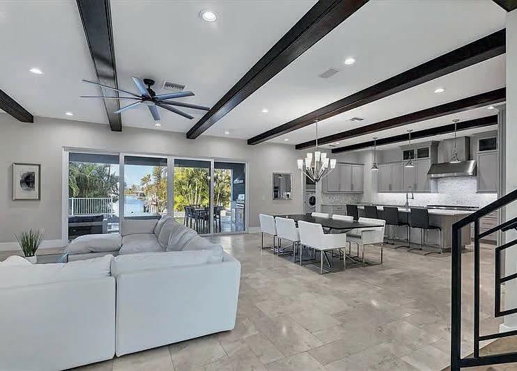 Welcome to Bayway Isles, a gated community that is home to the most luxurious waterfront properties. The expansive waterfront decks provide a seamless indoor/outdoor experience, while the fabulous infinity pool with a waterfall is surrounded by mature privacy landscape. With 135 ft of waterfront, this point lot offers endless spectacular sunsets. You can also take advantage of the deep water private 100 ft dock, which is finished in easy maintenance composite material and features a large deck with built-in seating, and a 16,000 lb boat lift.