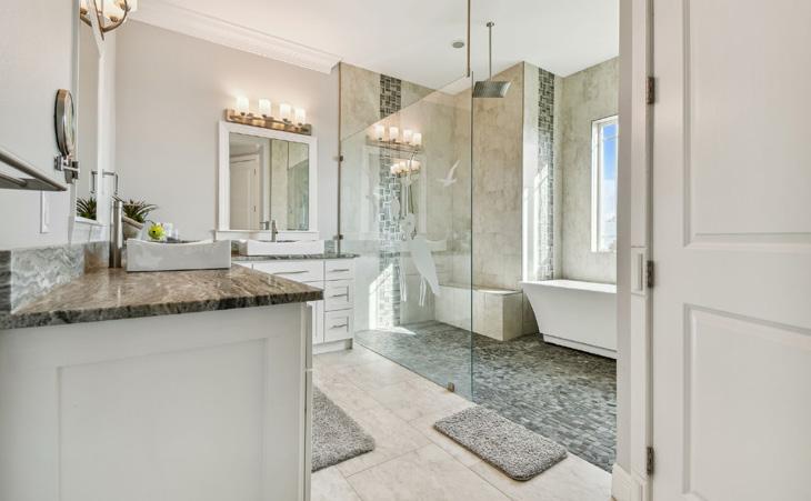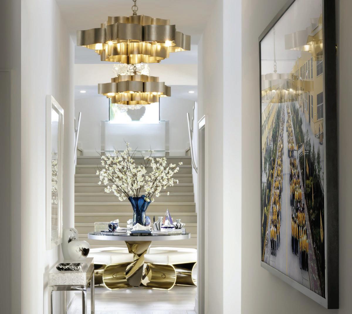 White Heat is a palatial 11,000-square-foot home with a straightforward yet dramatic black-and-white color palette accentuating the home’s unique features, along with various textures that evoke feelings of warmth and comfort. Metal and jewel tones added to the home’s decor and colorful artwork create a modern feel.