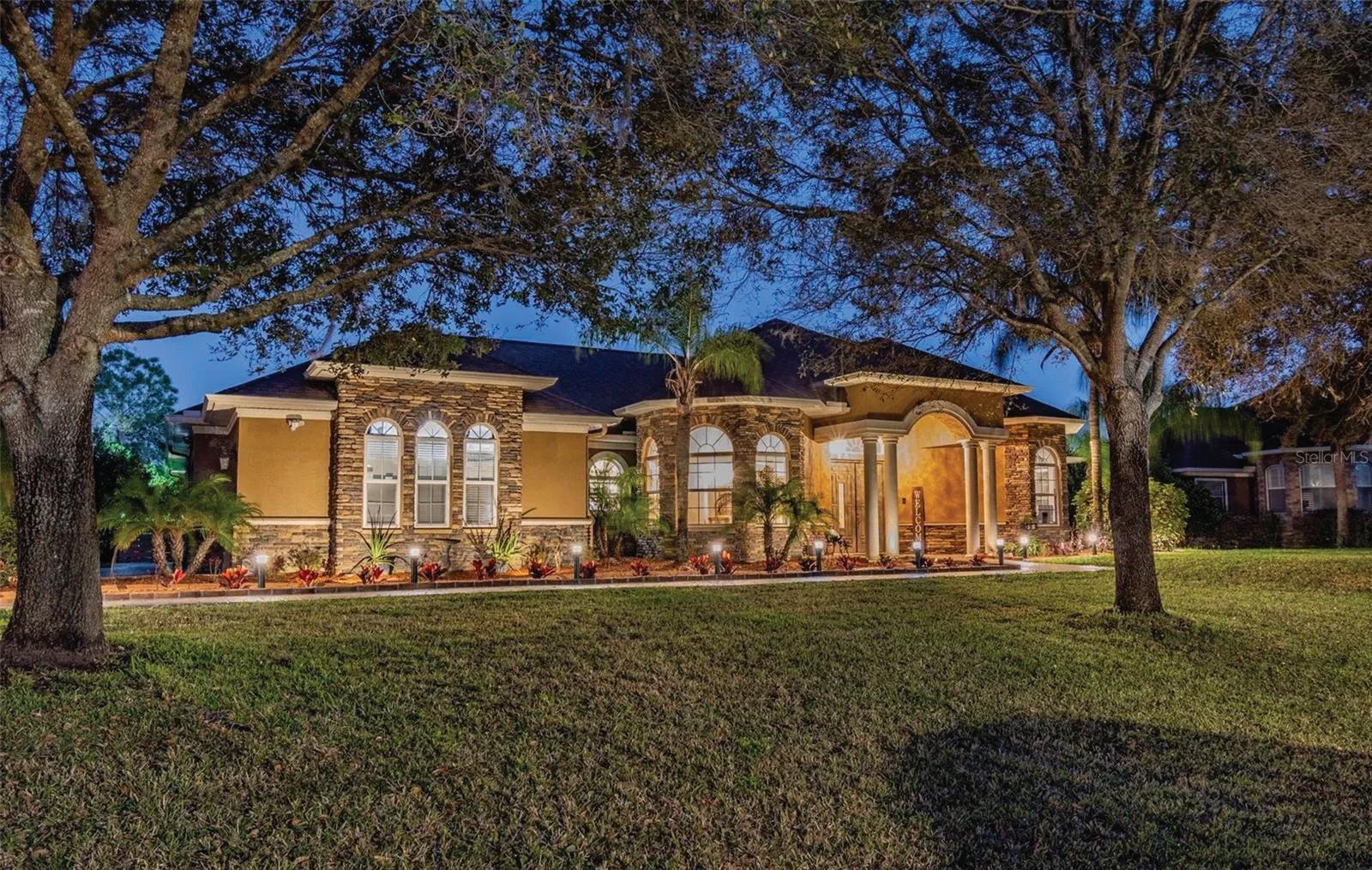 Selling Sunsets in Florida! This beautiful Cal Atlantic Stamford Pool home was build & upgraded to be a luxuries, elegant, and functional one-story floor plan that is situated on an oversize lot on a cul-de-sac in the AWARD WINNING community of Estancia. The Stamford model offers 4-bedrooms + 3.5 baths + office/den, 3-car garage with 3,518 sq ft living space. Throughout the entire home you can see luxurious details. As you enter into the home you are greeted by a long foyer leading to your open concept living space and well-appointed kitchen. This Gourmet Kitchen is a chefs dream with top level upgraded cabinets. In addition, you also have ample space to entertain your guests in your casual dining area which leads to the Patio into an incredible RESORT style outdoor living space complete with a Heated SALTWATER POOL and conservation view that makes you feel like you are at a LUXURY RESORT. Master bedroom suite offers tray ceiling, Walk-in Closet, exquisite en-suite bathroom. The other 3 bedrooms are oversized with large closets. The office provides plenty of space and sunlight. Enjoy a Lush Nature view outdoor living area in a covered screened lanai for everyday entertainment and relaxing. The house is located in the highly sought after beautiful community of Estancia, which provides a variety of amenities for you and your family. This upscale community offers a 7,000 sq ft elegantly appointed amenity center with a junior-sized Olympic pool, resort-style pool, fitness center, covered playground, park, nature trails & more. Monthly social events allow for real community feels and socializing. Located near the Shops at Wiregrass in Wesley Chapel, Estancia homeowners enjoy incredible amenities, including the exclusive Estancia Club, walking trails, dog park & neighborhood parks. Taxes include CDD. Call today for a private showing! Welcome, Home!